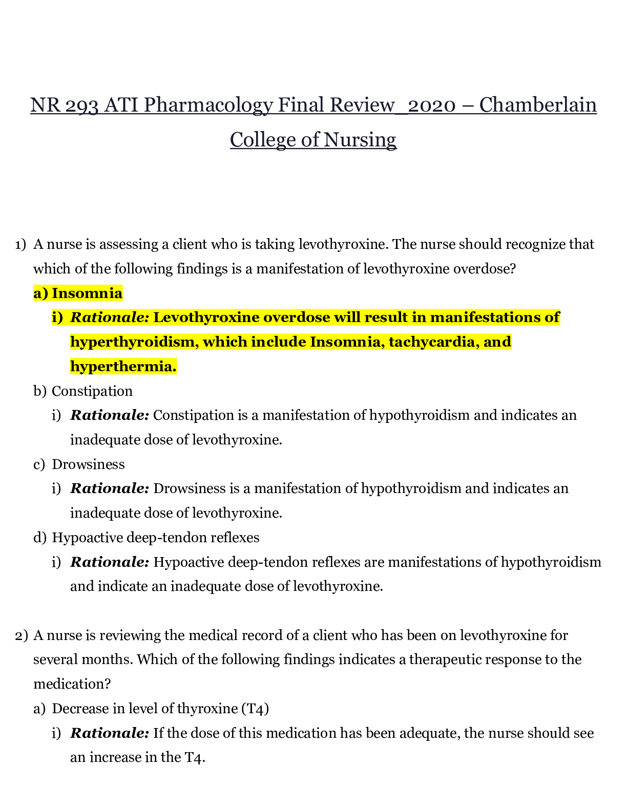 *NURSING > QUESTIONS & ANSWERS > NR 293 ATI Pharmacology Final Review Questions and Answers with Explanations (latest Update), 100% Correct, Download to Score A (All)