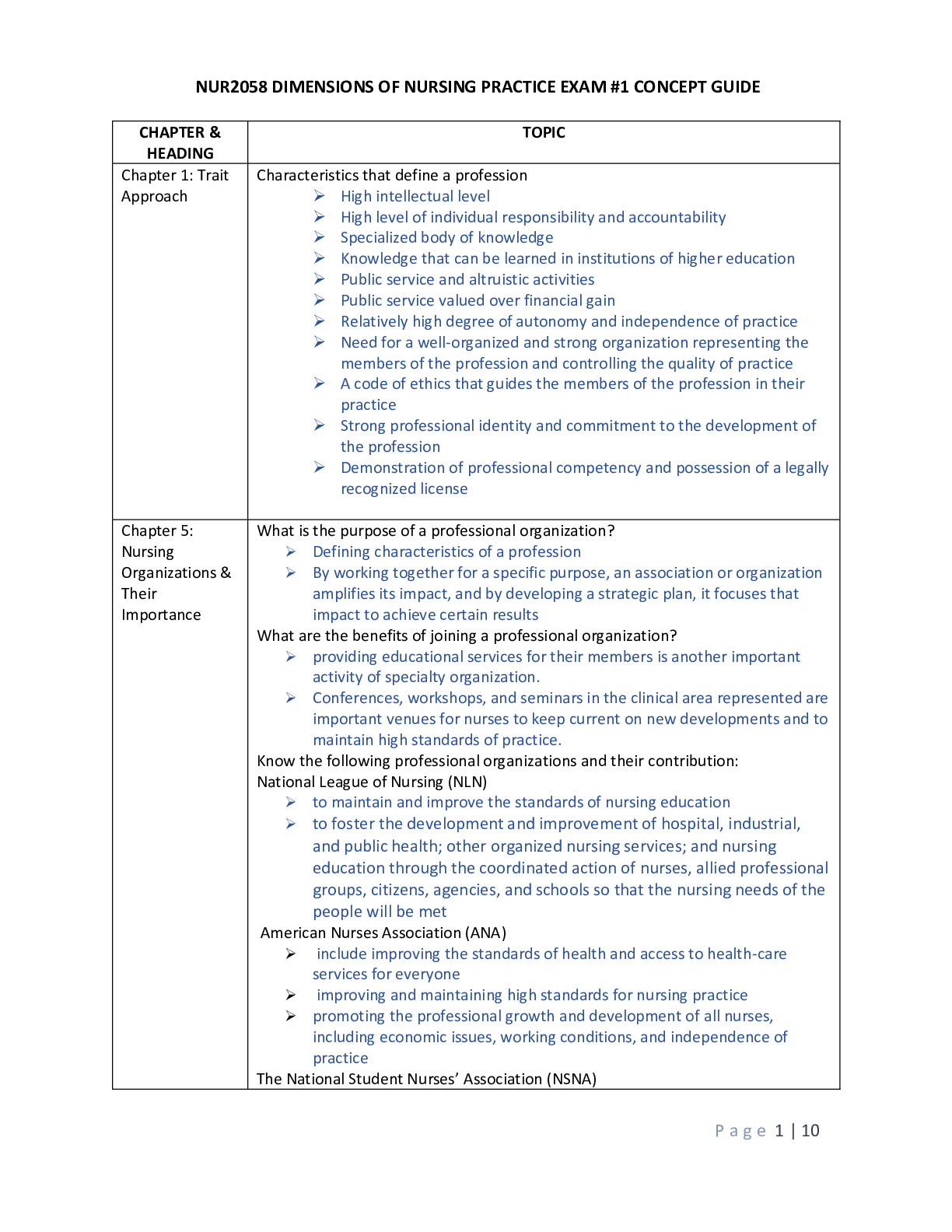 *NURSING > EXAM > NUR 2058 Dimensions Exam 1 Complete Study Guide (All)