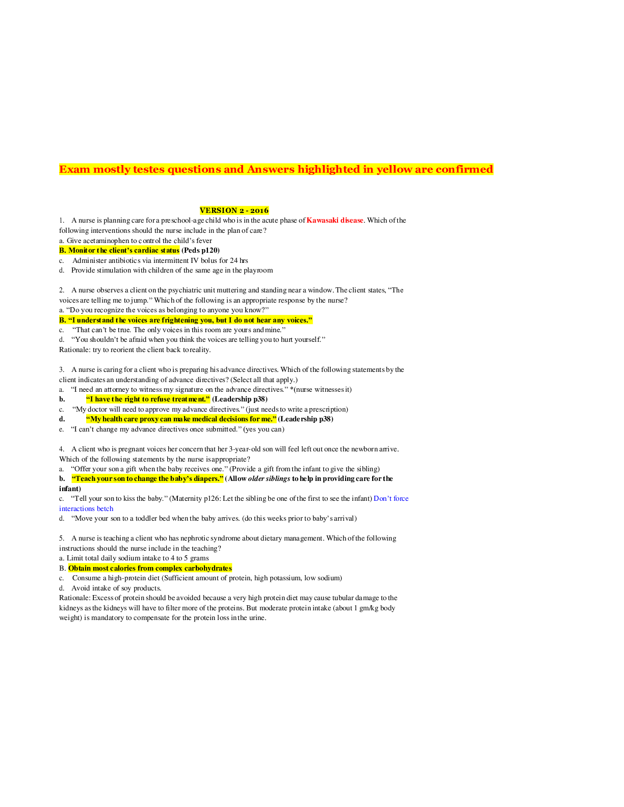 *NURSING > QUESTIONS & ANSWERS > Exam mostly testes questions and Answers highlighted in yellow are confirmed (All)