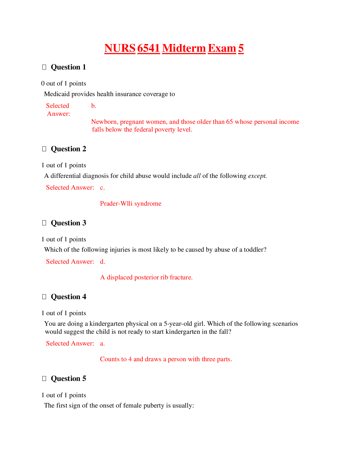 *NURSING > EXAM REVIEW > NURS 6541 MIDTERM EXAM 5 – QUESTION AND ANSWERS (100/100) (All)