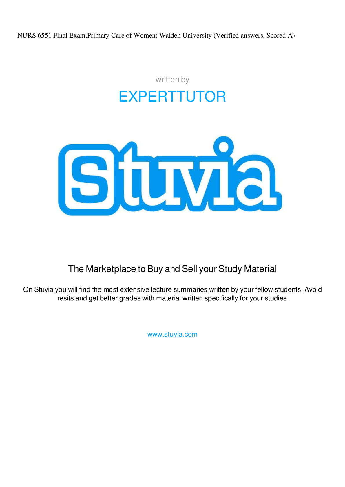 *NURSING > EXAM > NURS 6551 Final Exam 1/ NURS6551 Final Exam 1 (Latest) Verified Answers by Expert. (All)