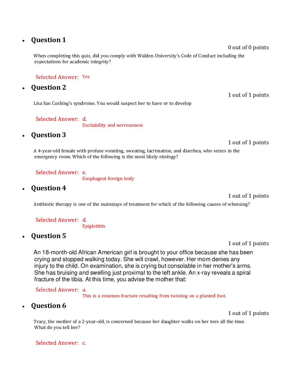 *NURSING > EXAM > NURS 6551 Final Exam 5– Pediatrics (Verified Answers by Expert) Download to Score A. (All)