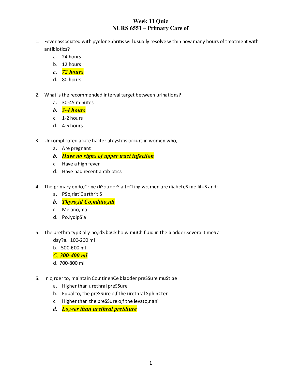 *NURSING > EXAM > NURS 6551 WEEK 11 QUIZ – QUESTION AND ANSWERS (All)