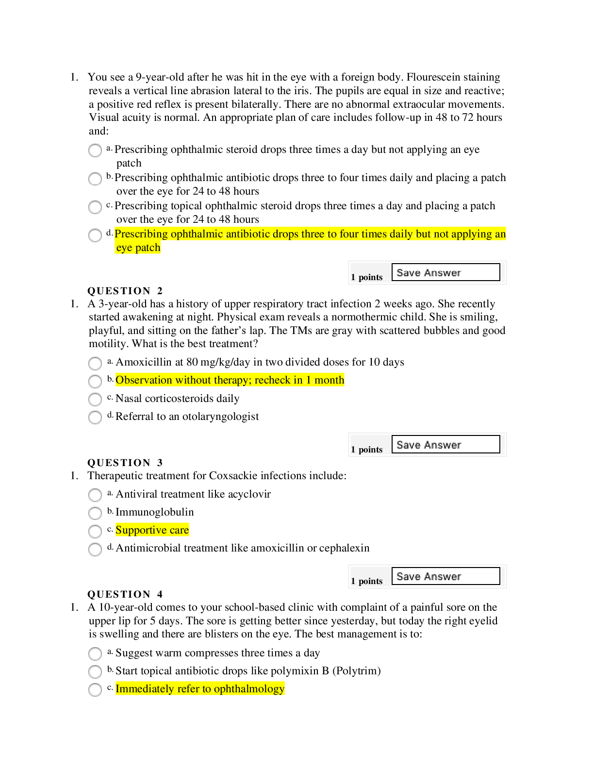 *NURSING > EXAM > NURS 6541N Final Exam 1– Question and Answers – Primary Care Adolescent & Child Spring 2020 (All)