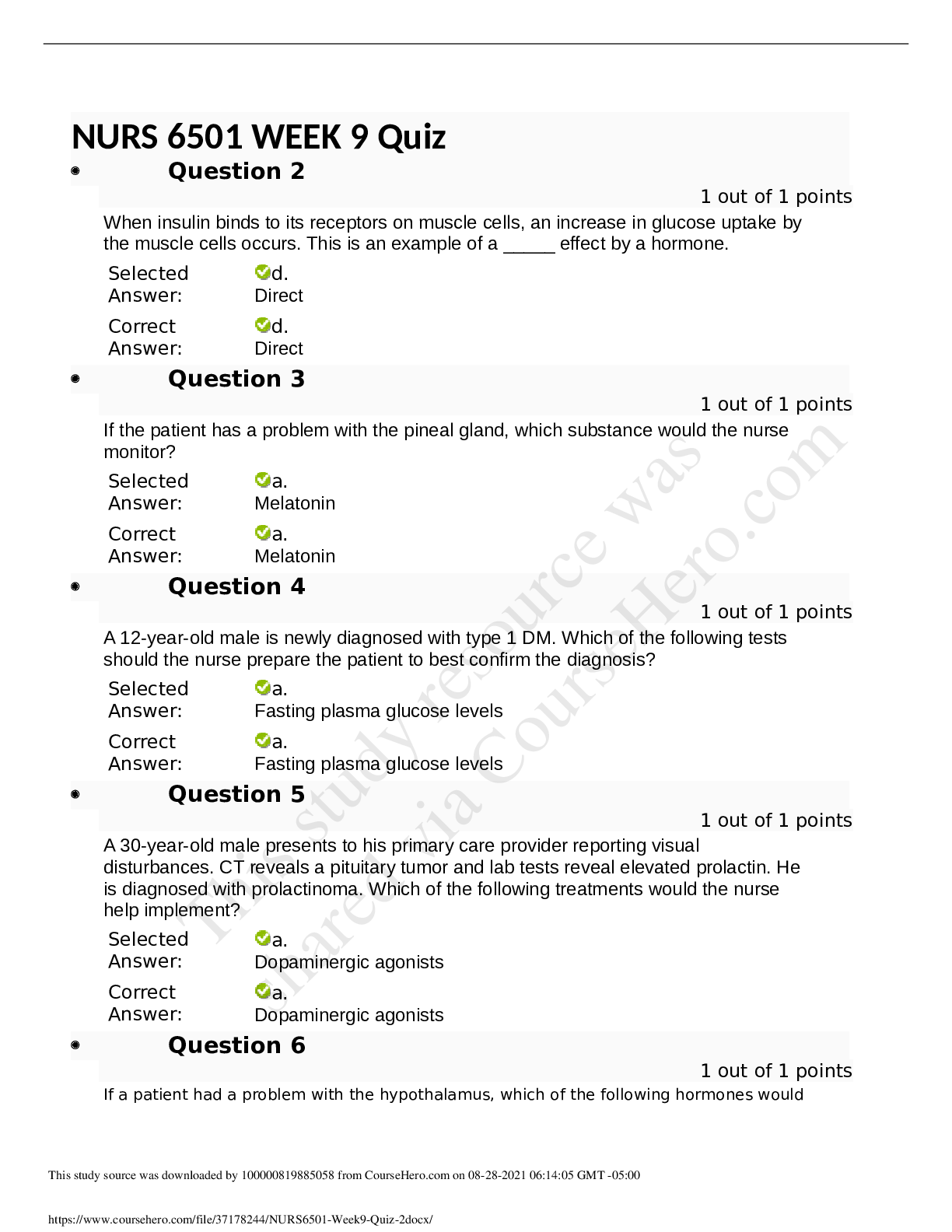 *NURSING > EXAM > NURS6501 / NURS-6501 Advanced Pathophysiology 2020/2021 Quiz - Week 6/ MIDTERM GRADED 30/30 (All)