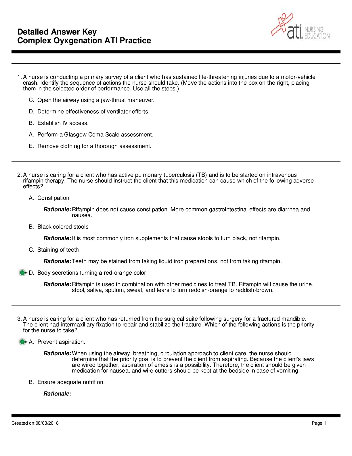 *NURSING > EXAM > MEDSURG 2 NUR 265 ATI OXYGENATION PRACTICE-9.KEY QUESTIONS WITH VERIFIED ANSWERS (All)