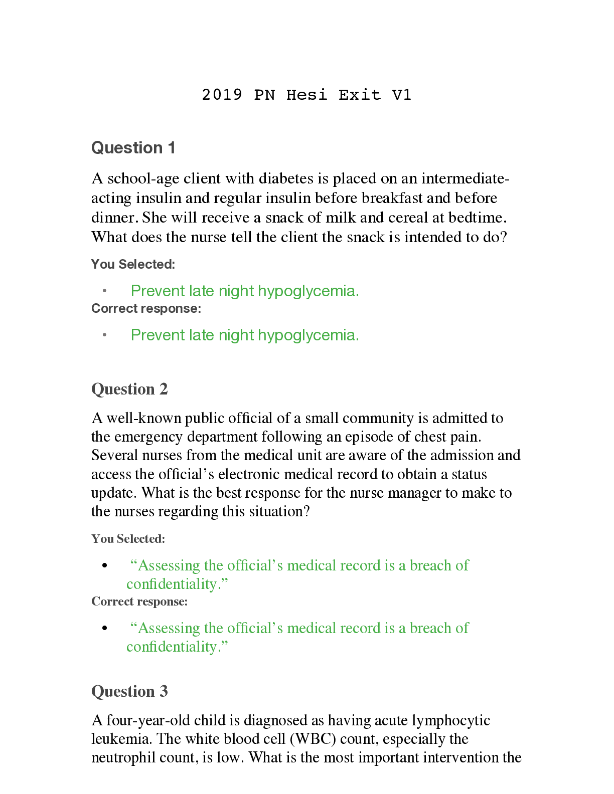 *NURSING > EXAM > 2019 PN Hesi Exit V1 (Questions and Answers) (All)