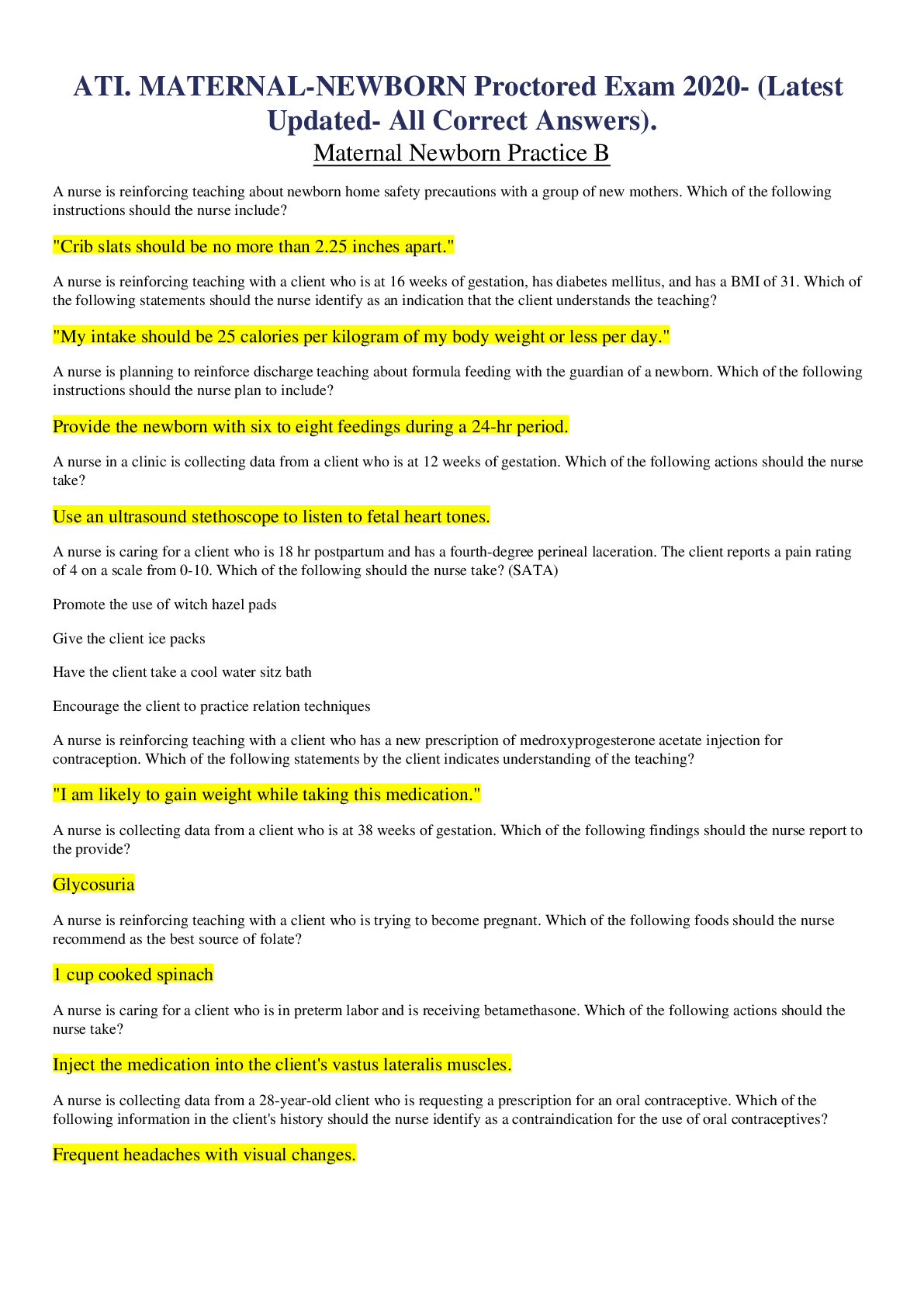 *NURSING > QUESTIONS & ANSWERS > ATI-Maternal- Newborn- Practice Questions&Answers (All)
