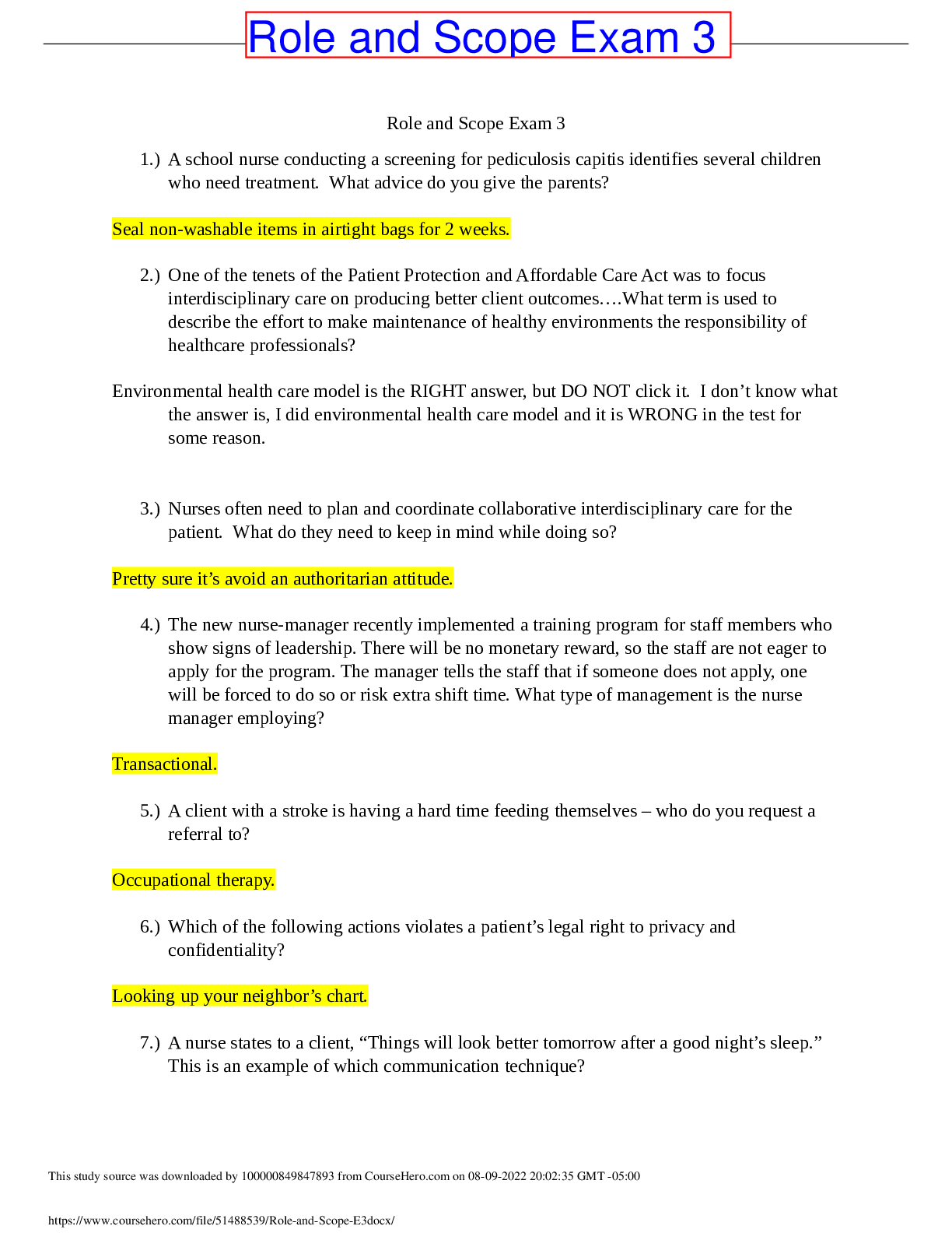 *NURSING > EXAM > Role and Scope E3.docx done in Rasmussen College (All)