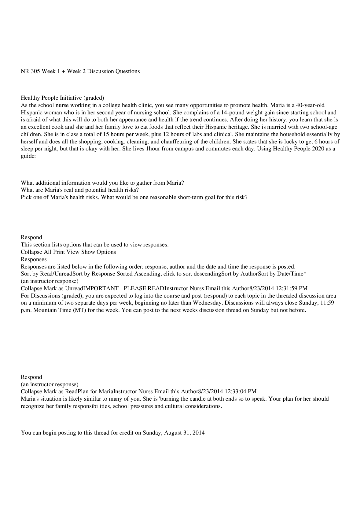 *NURSING > ESSAY > NR 305 Week 1 + Week 2 Discussion Questions GRADED A (All)
