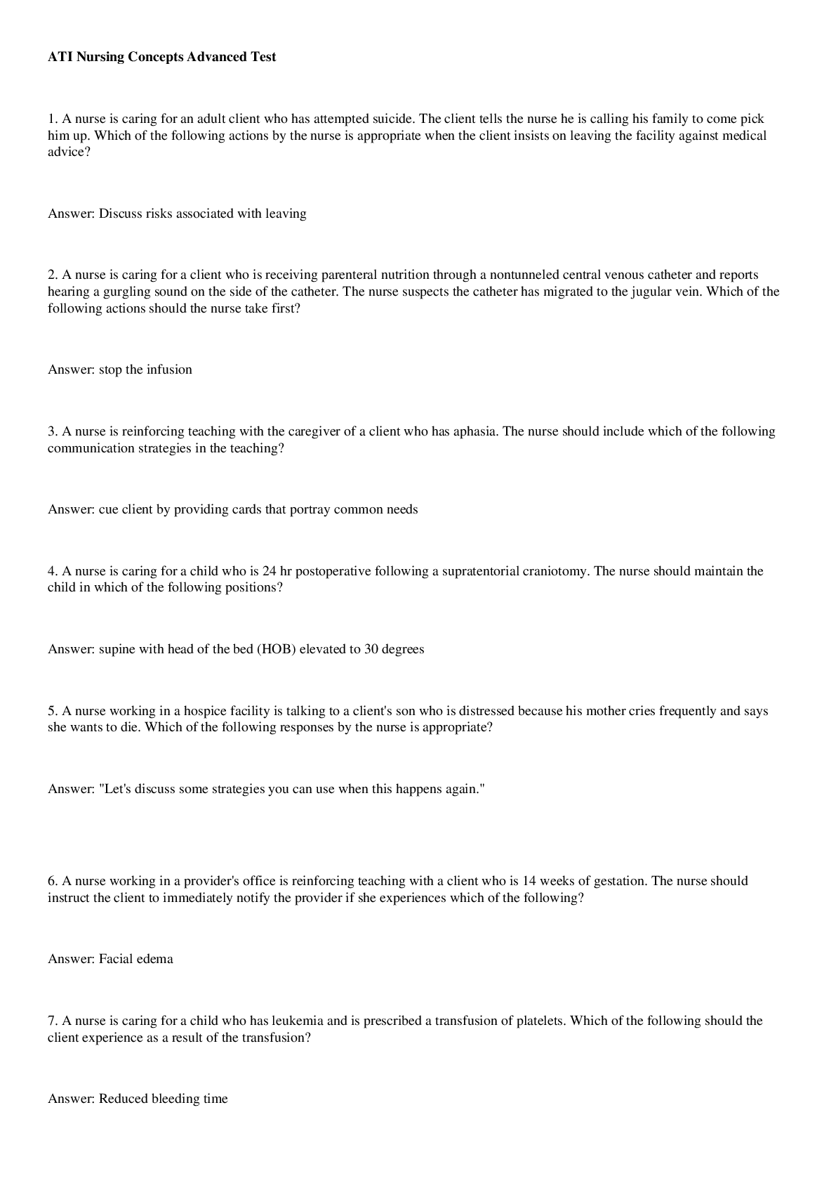 *NURSING > QUESTIONS and ANSWERS > ATI Nursing Concepts Advanced Test Latest Update (All)