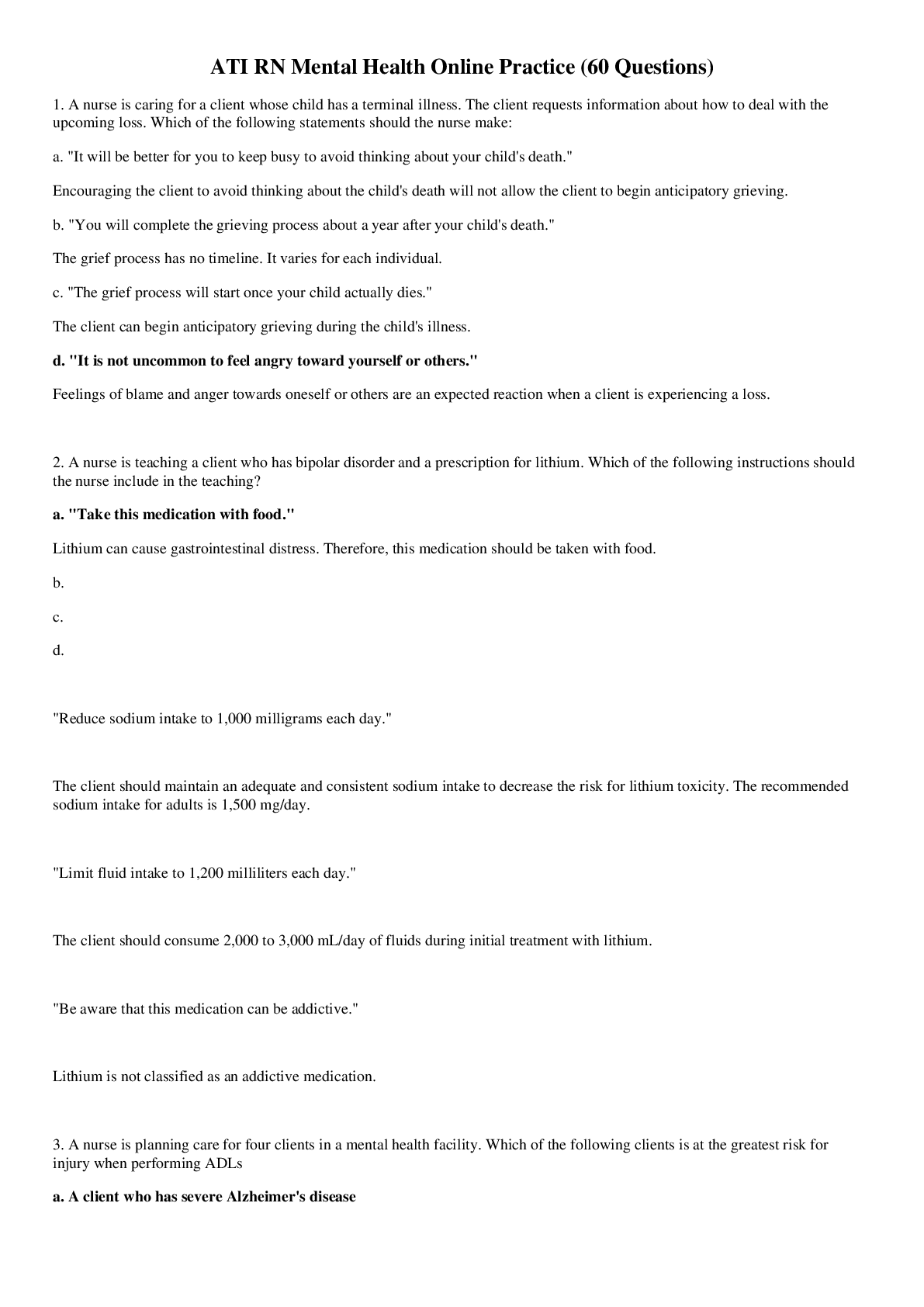 *NURSING > QUESTIONS and ANSWERS > ATI RN Mental Health Online Practice (60 Questions) GRADED A (All)