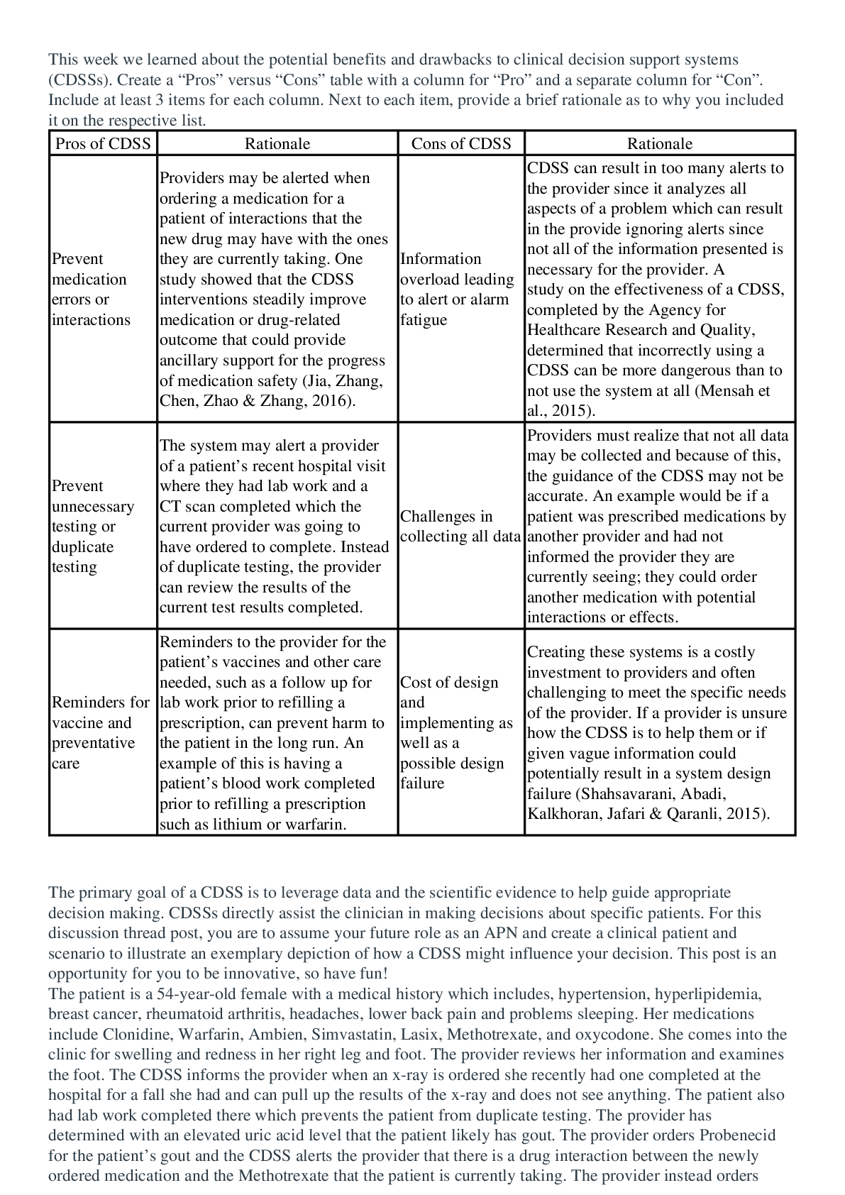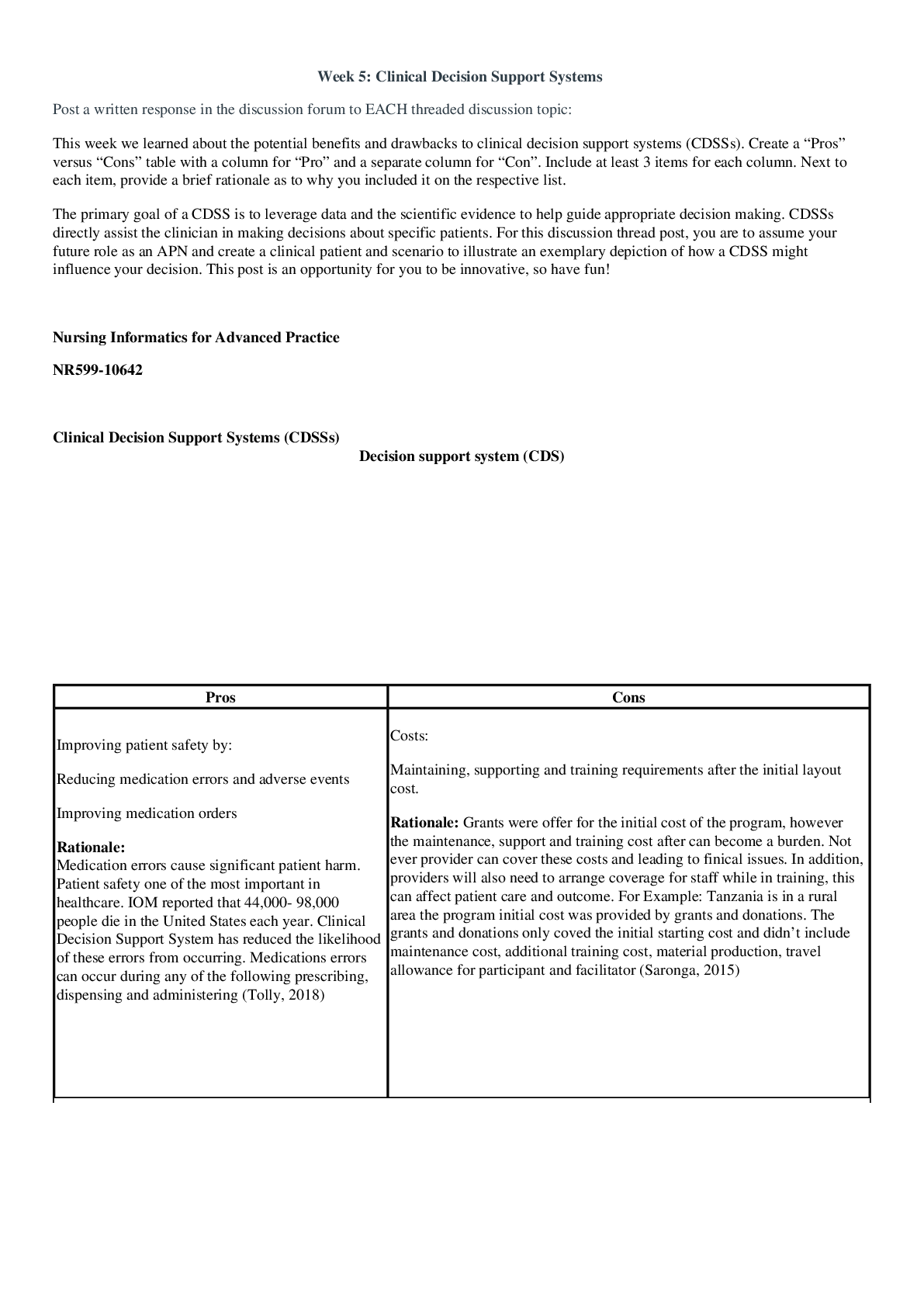 *NURSING > ESSAY > NR 599 Week 5 clinical decision support systems (CDSSs). (All)
