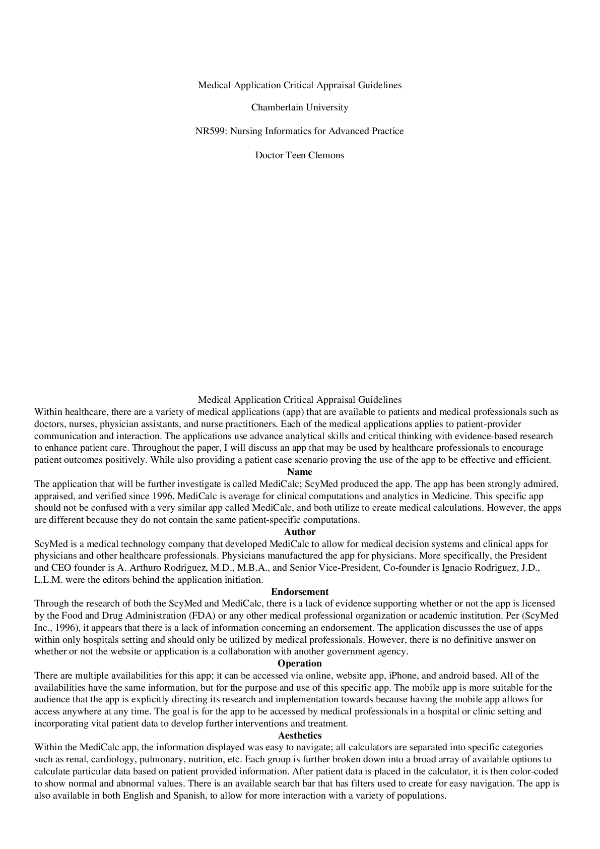 *NURSING > ESSAY > NR 599 Medical Application Critical Appraisal Guidelines LATEST UPDATE (All)
