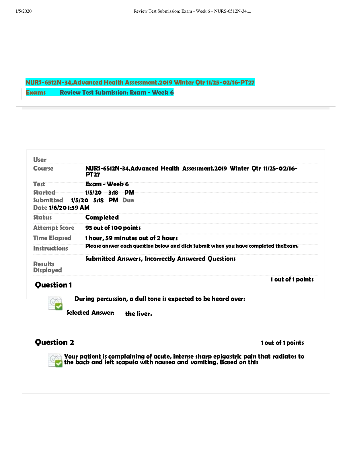*NURSING > EXAM > NURS 6512N-34 - Week 6 Review Test Submission: Exam (All)