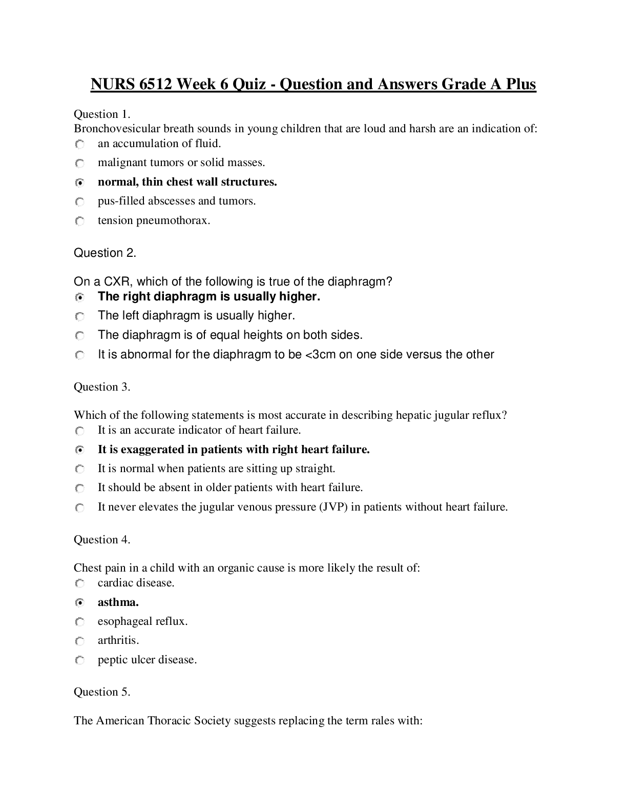 *NURSING > QUESTIONS & ANSWERS > NURS 6512N Week 6 Quiz – Question with Answers (All)