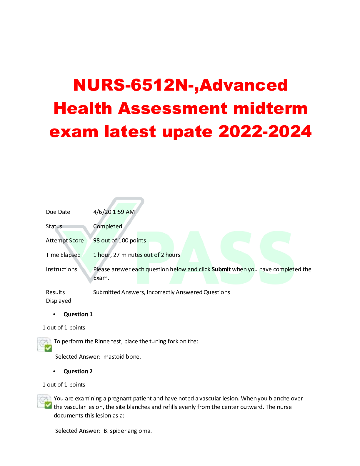 *NURSING > EXAM > MN 566 Midterm Exam/ MN566 Into to Primary Care. A+ GRADED (All)
