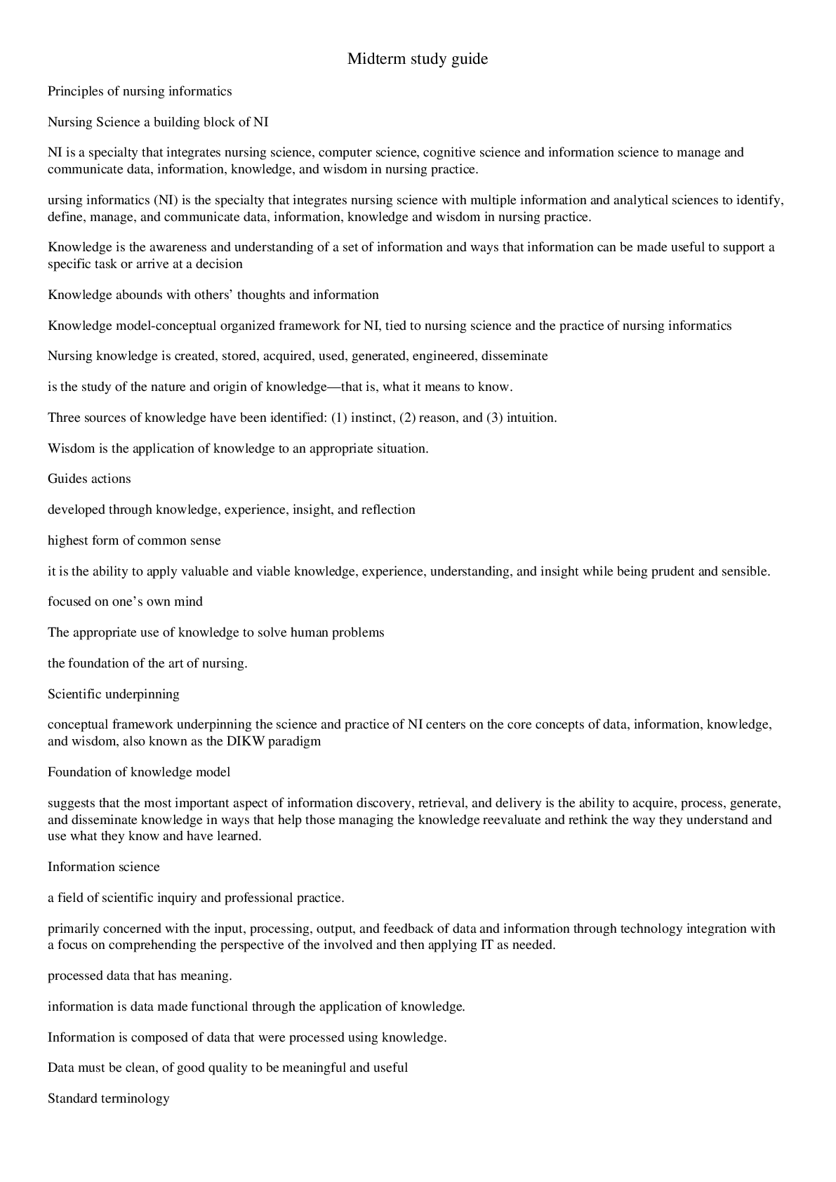 *NURSING > EXAM > NR599 Informatics Midterm Study Guide Nursing Informatics for Advanced Nursing (All)