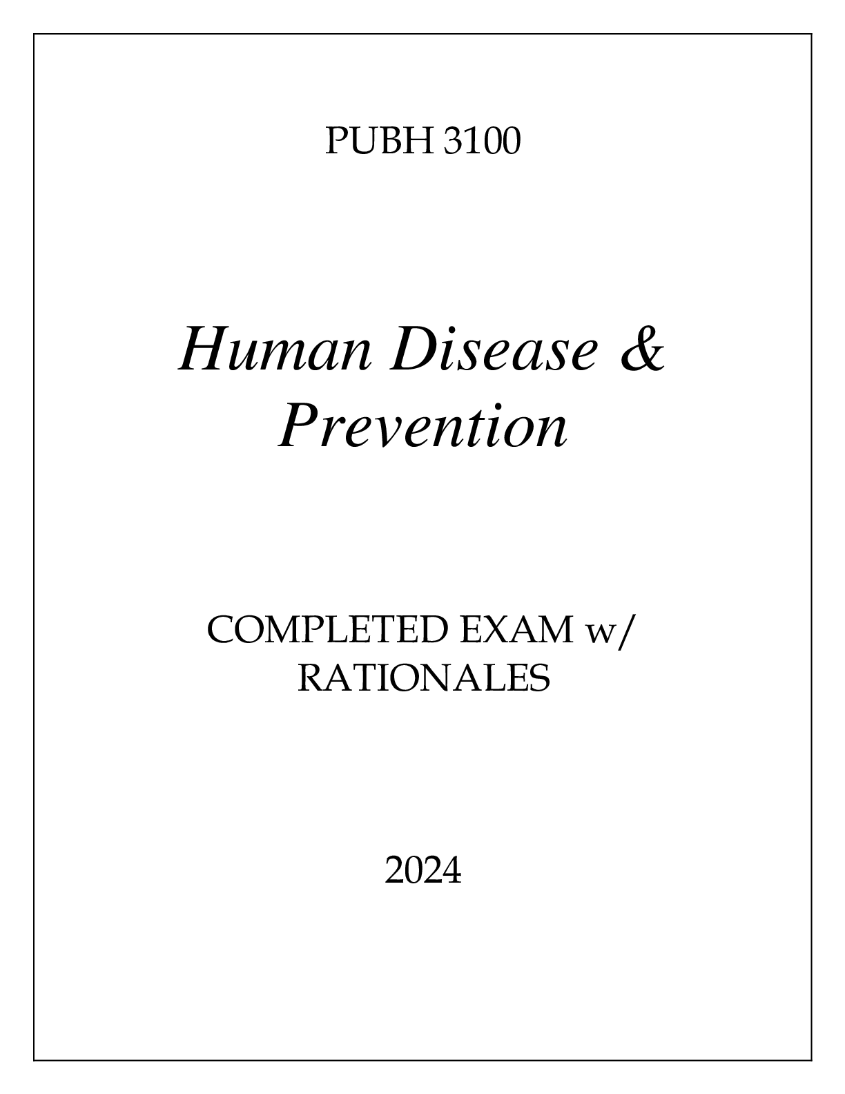 *NURSING > EXAM > PUBH 3100 HUMAN DISEASE & PREVENTION COMPLETED EXAM WITH RATIONALES 2024 (All)