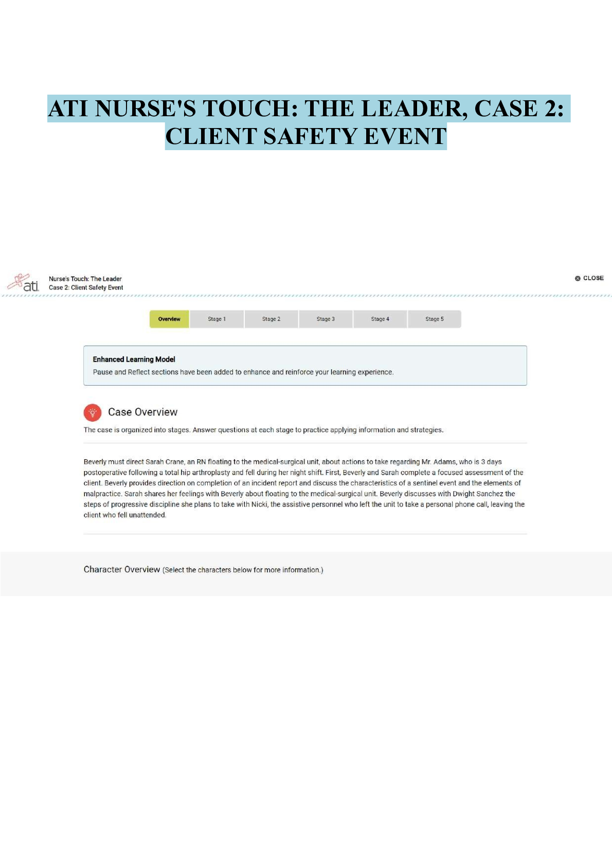 *NURSING > EXAM > ATI Nurse's Touch- The Leader, Case 2- Client Safety Event (All)