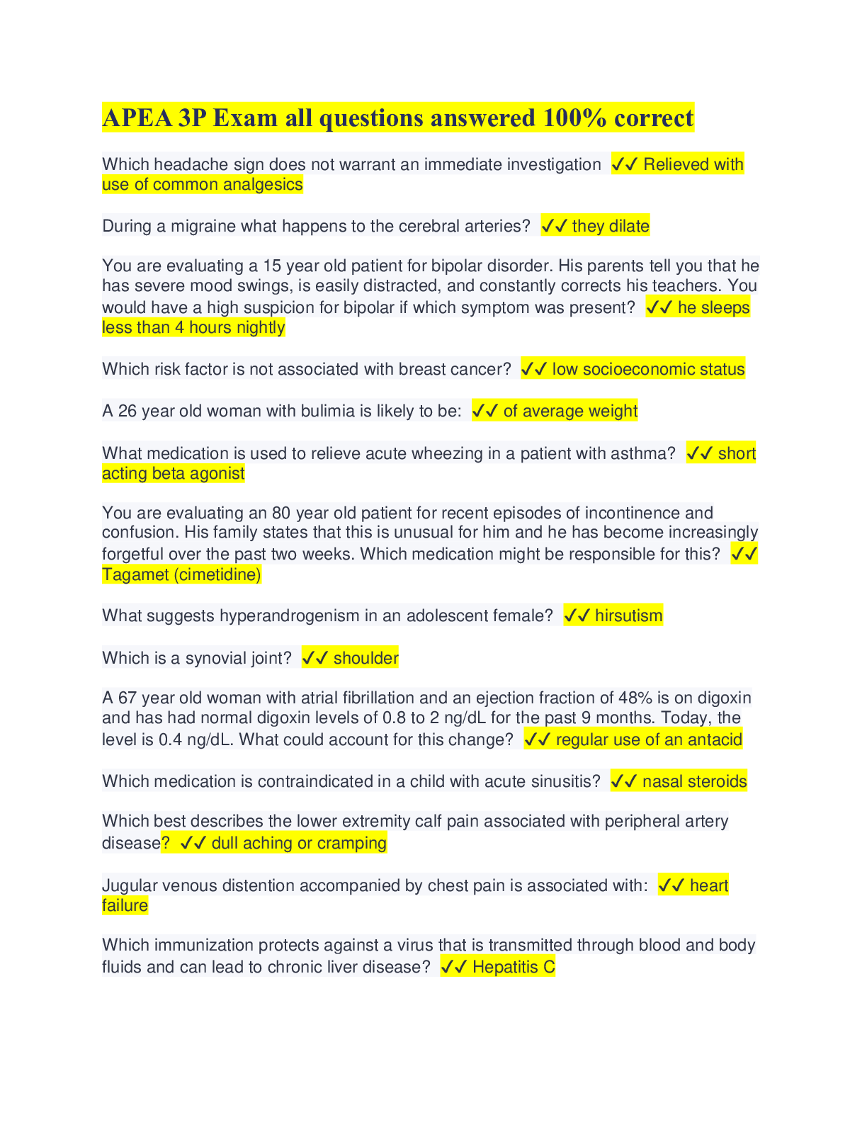 *NURSING > EXAM > APEA 3P EXAM QUESTIONS AND ANSWERS 2024 (All)