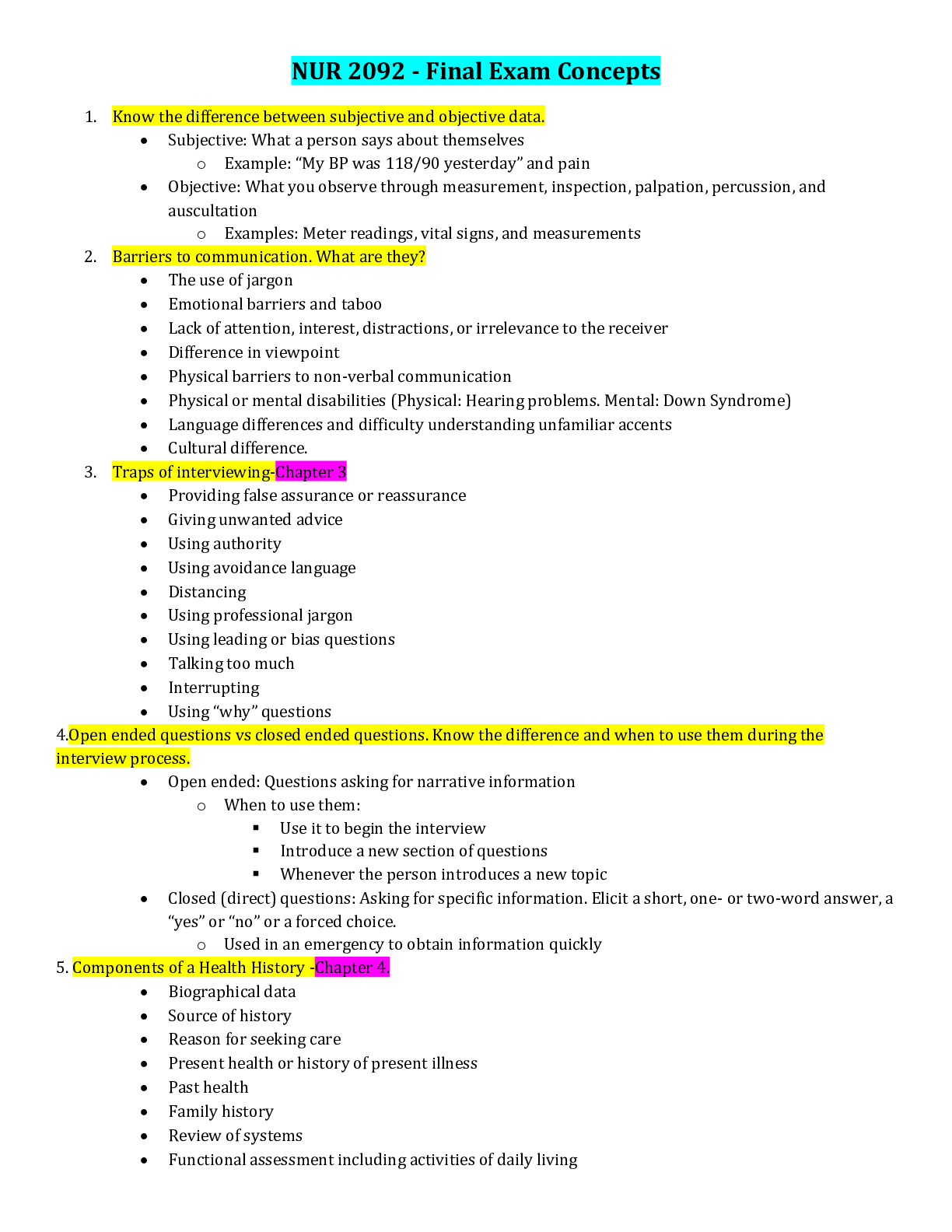 *NURSING > STUDY GUIDE > NUR 2092 - Final Exam Concepts (All)
