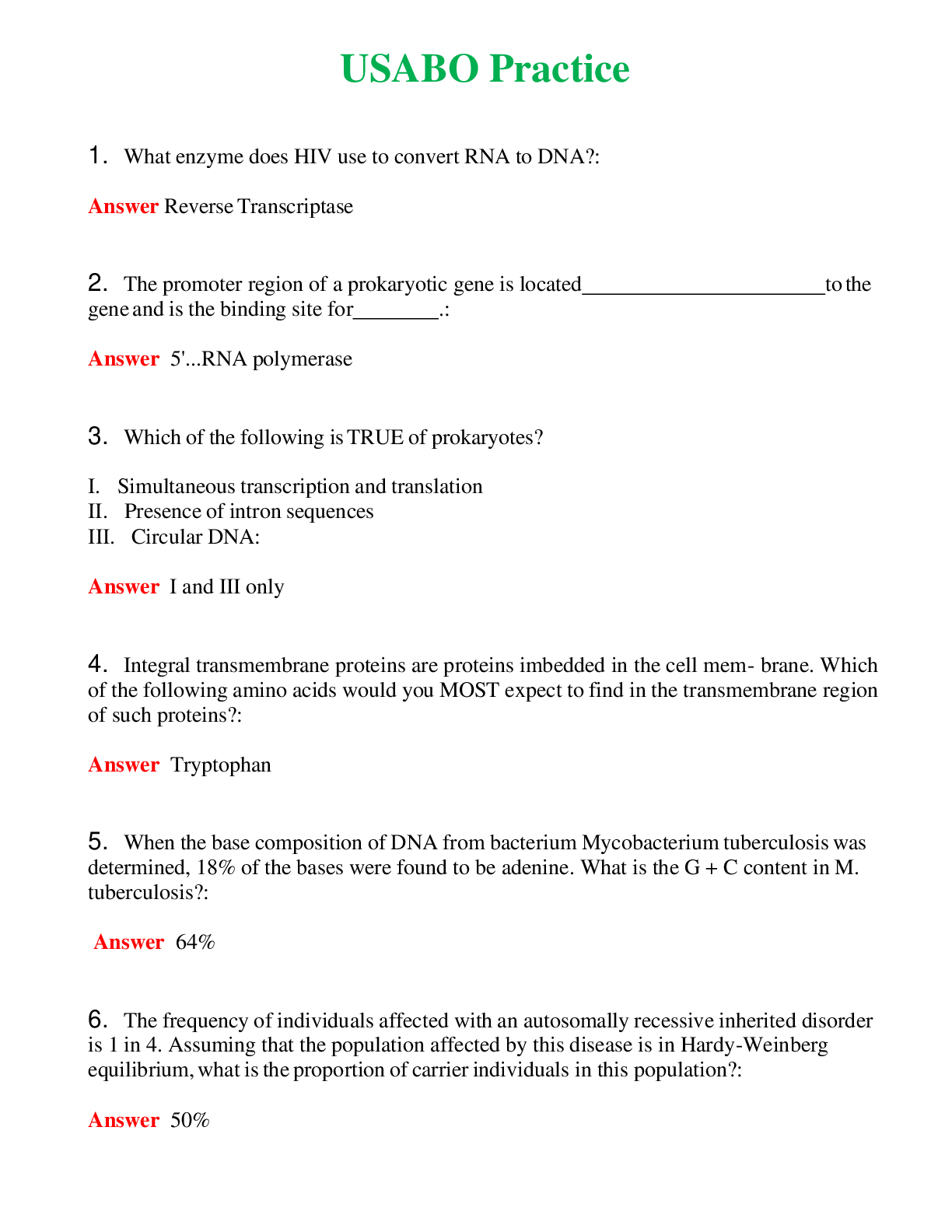 *NURSING > EXAM > USABO Practice (Latest 2024) Questions With Complete Grade A+ Answers (All)
