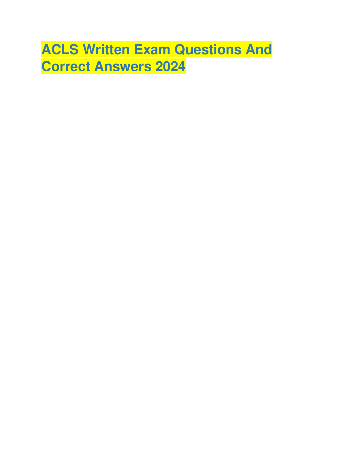 *NURSING > EXAM > ACLS Written Exam Questions And Correct Answers 2024 (All)