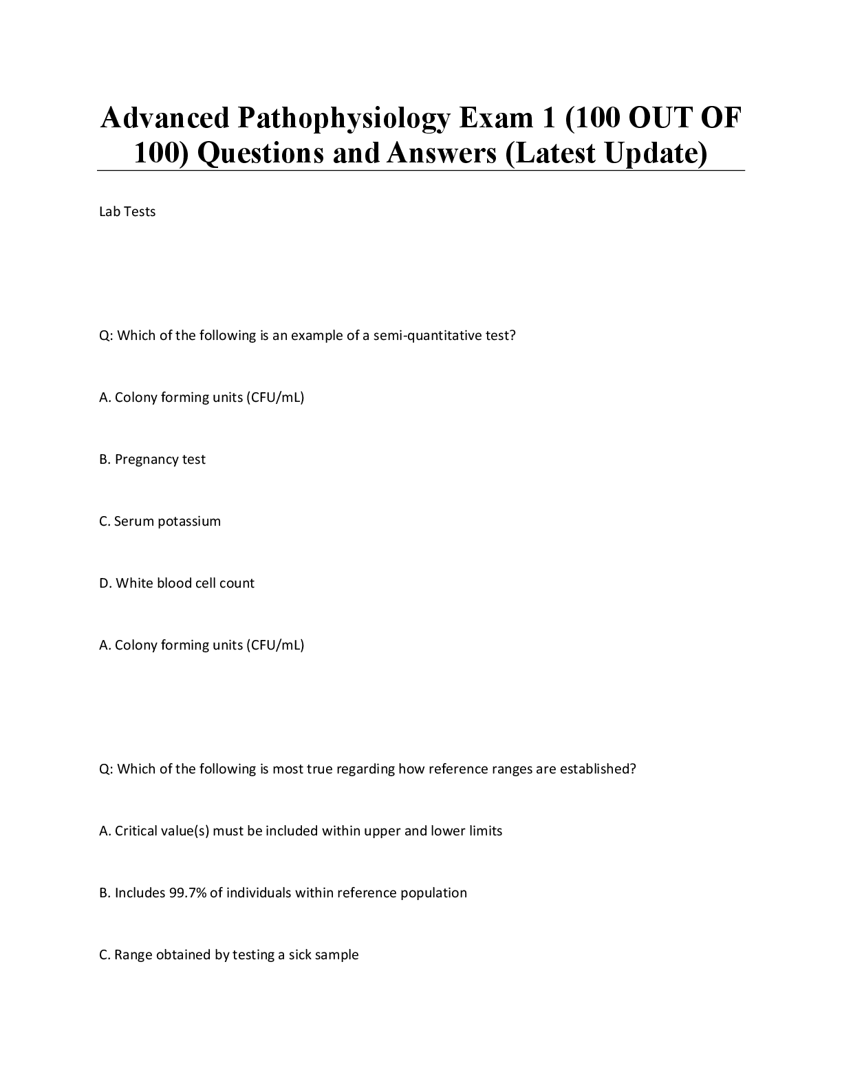 *NURSING > EXAM > Advanced Pathophysiology Exam 1 (100 OUT OF 100) Questions and Answers (Latest Update) (All)