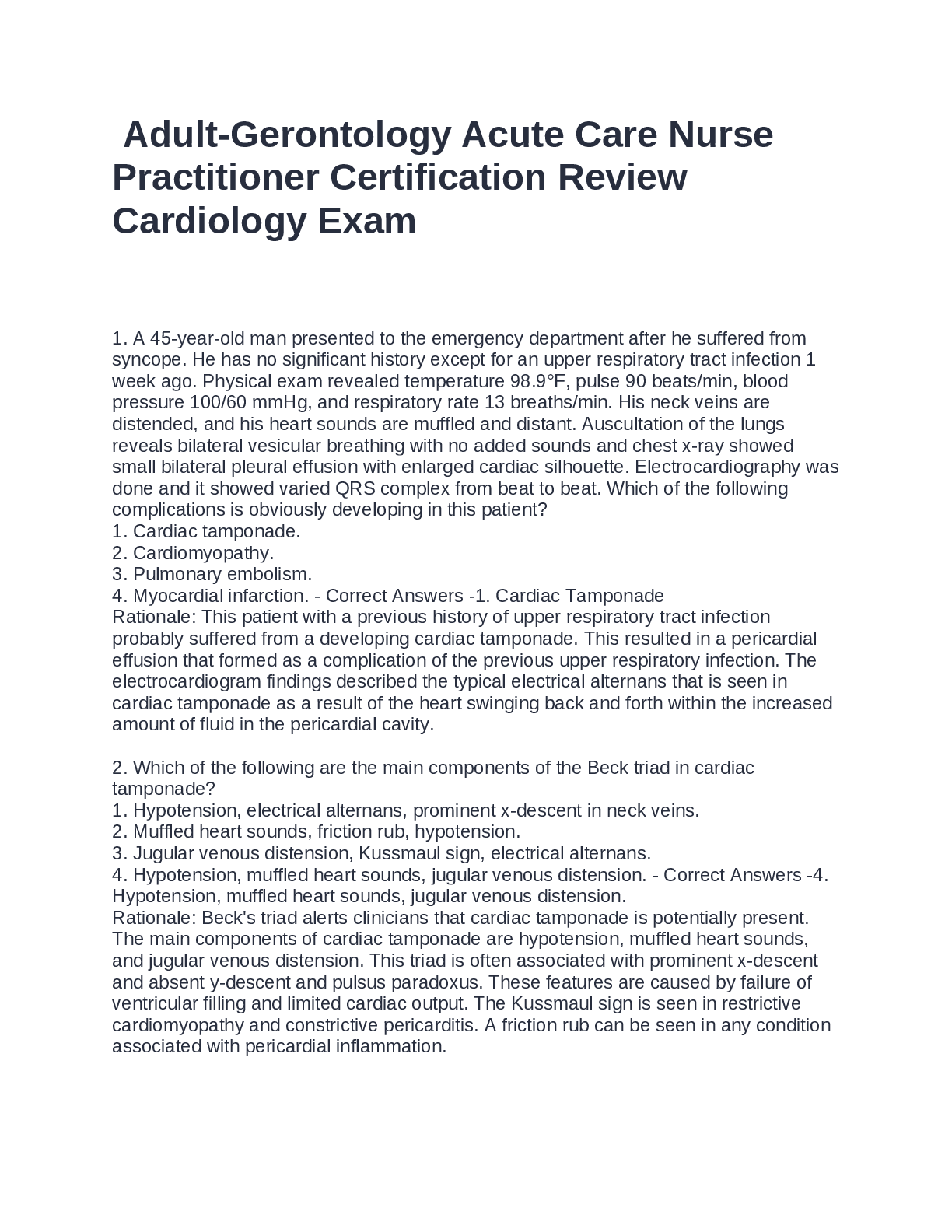 *NURSING > EXAM > Adult-Gerontology Acute Care Nurse Practitioner Certification Review Cardiology Exam 2024 (All)
