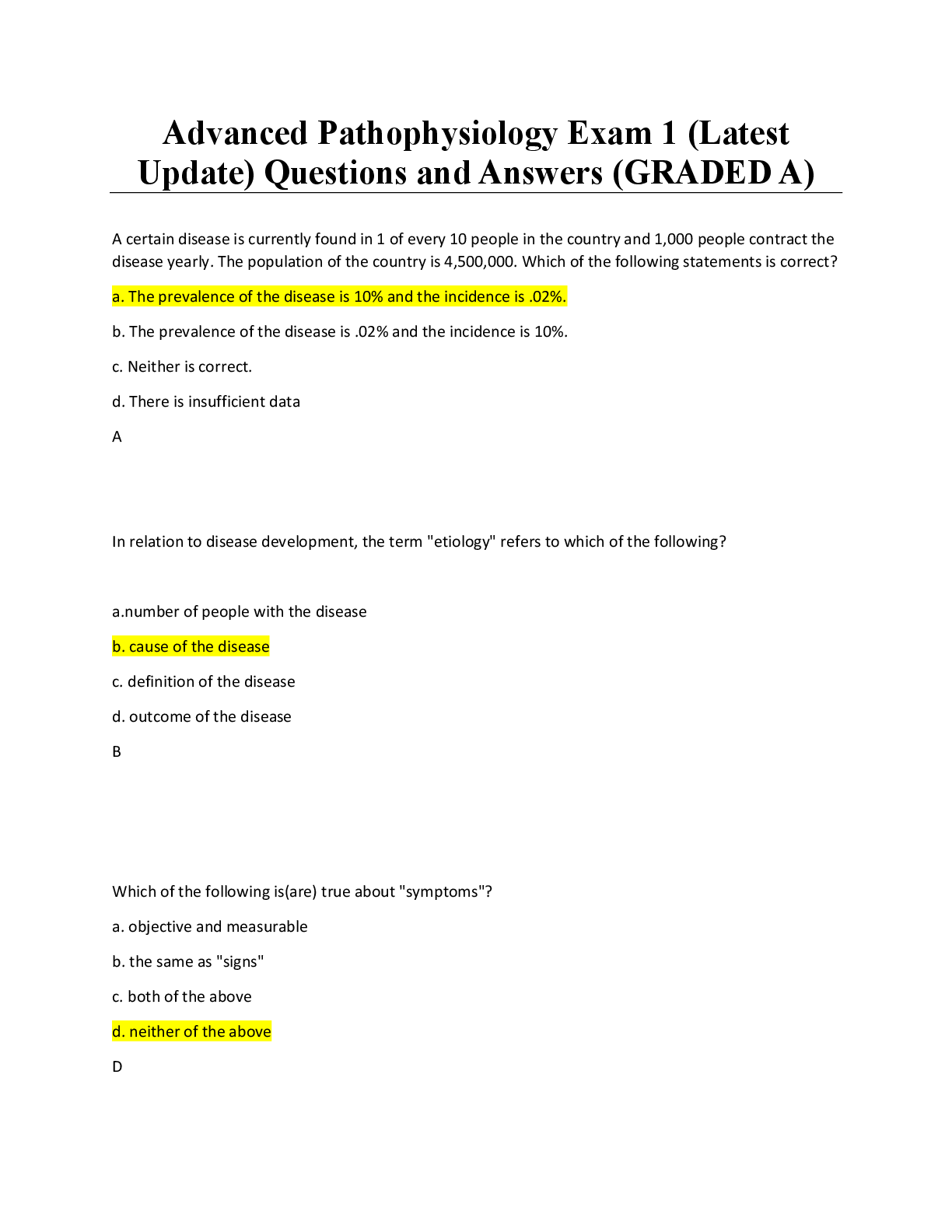 *NURSING > EXAM > Advanced Pathophysiology Exam 1 (Latest Update) Questions and Answers (GRADED A) (All)