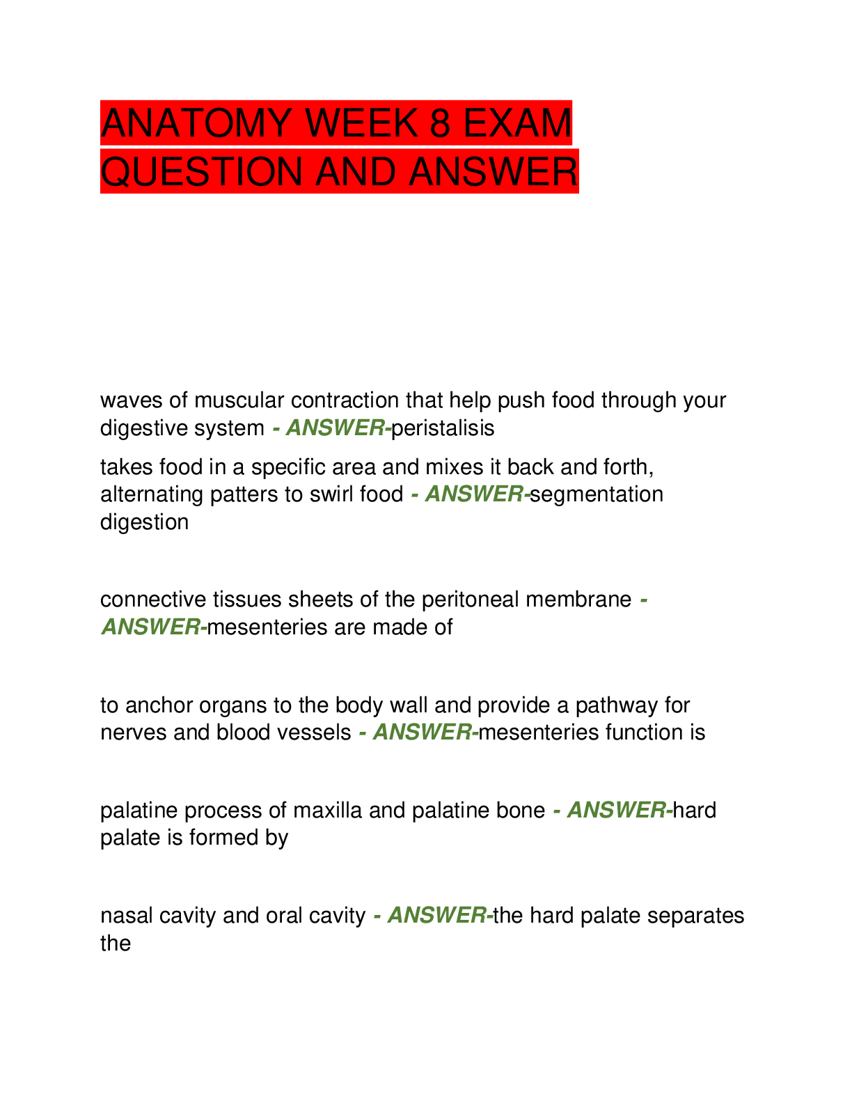 *NURSING > EXAM > ANATOMY WEEK 8 EXAM QUESTION AND ANSWER (All)