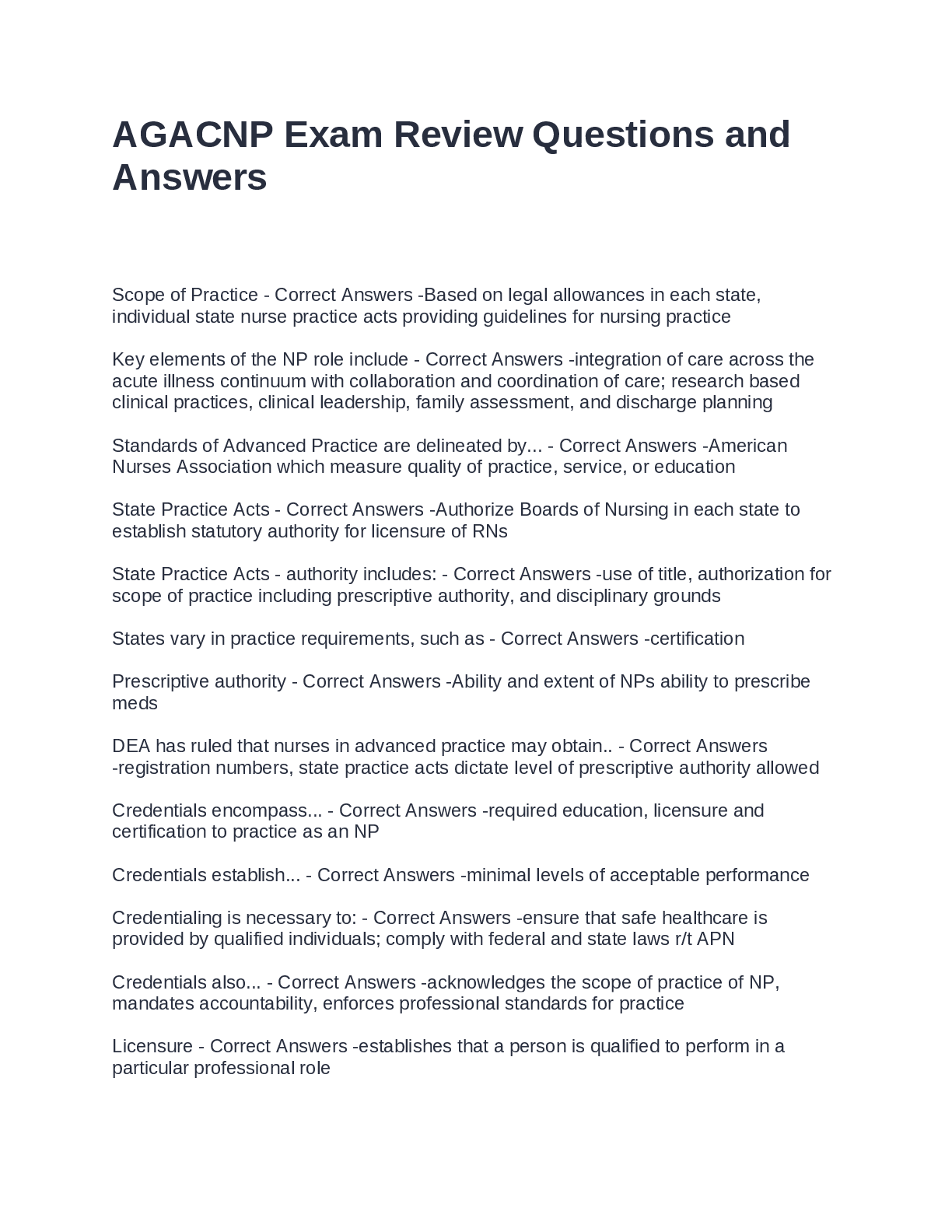 *NURSING > EXAM > AGACNP Exam Review Questions and Answers (All)