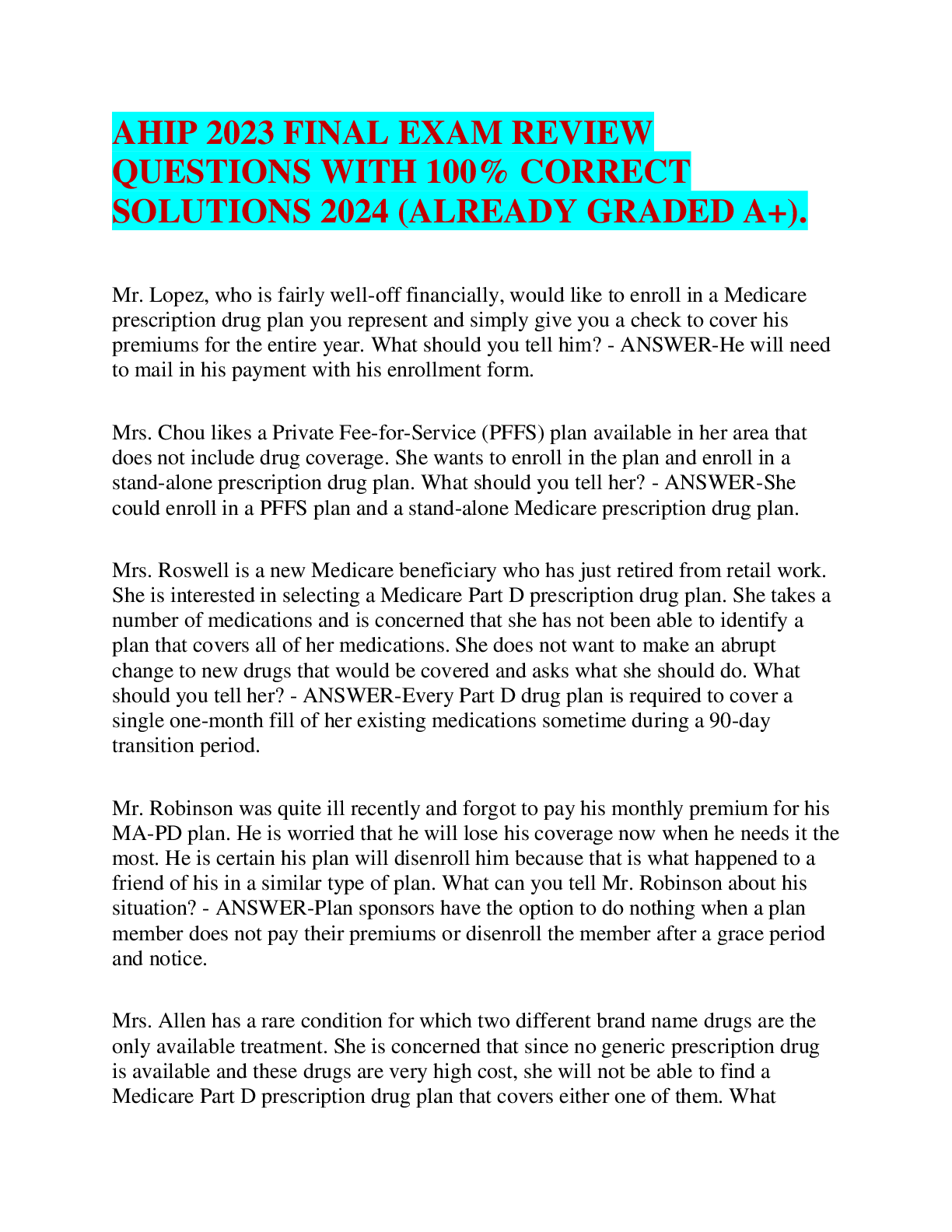 *NURSING > EXAM > AHIP 2023 FINAL EXAM REVIEW QUESTIONS WITH 100% CORRECT SOLUTIONS 2024 (ALREADY GRADED A+). (All)