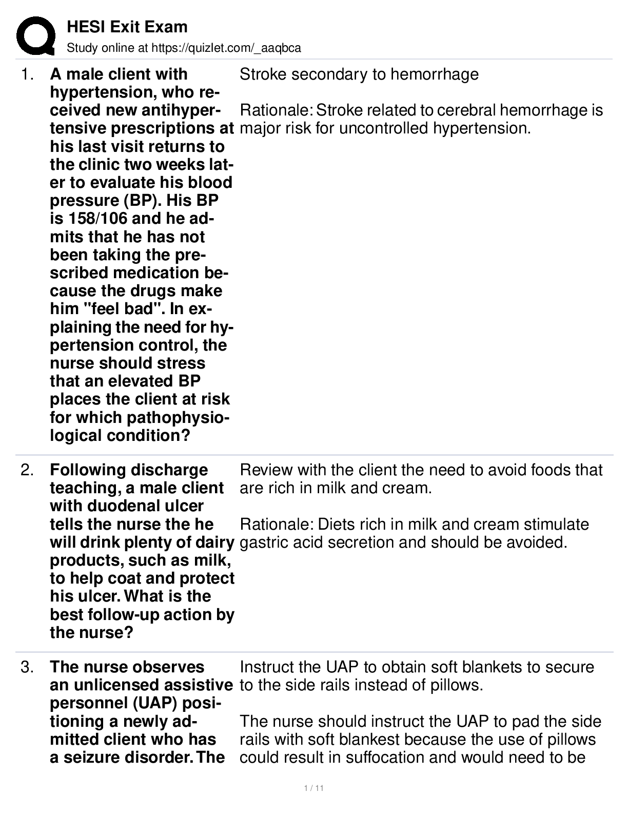 *NURSING > EXAM > HESI Exit Exam 2024 (All)