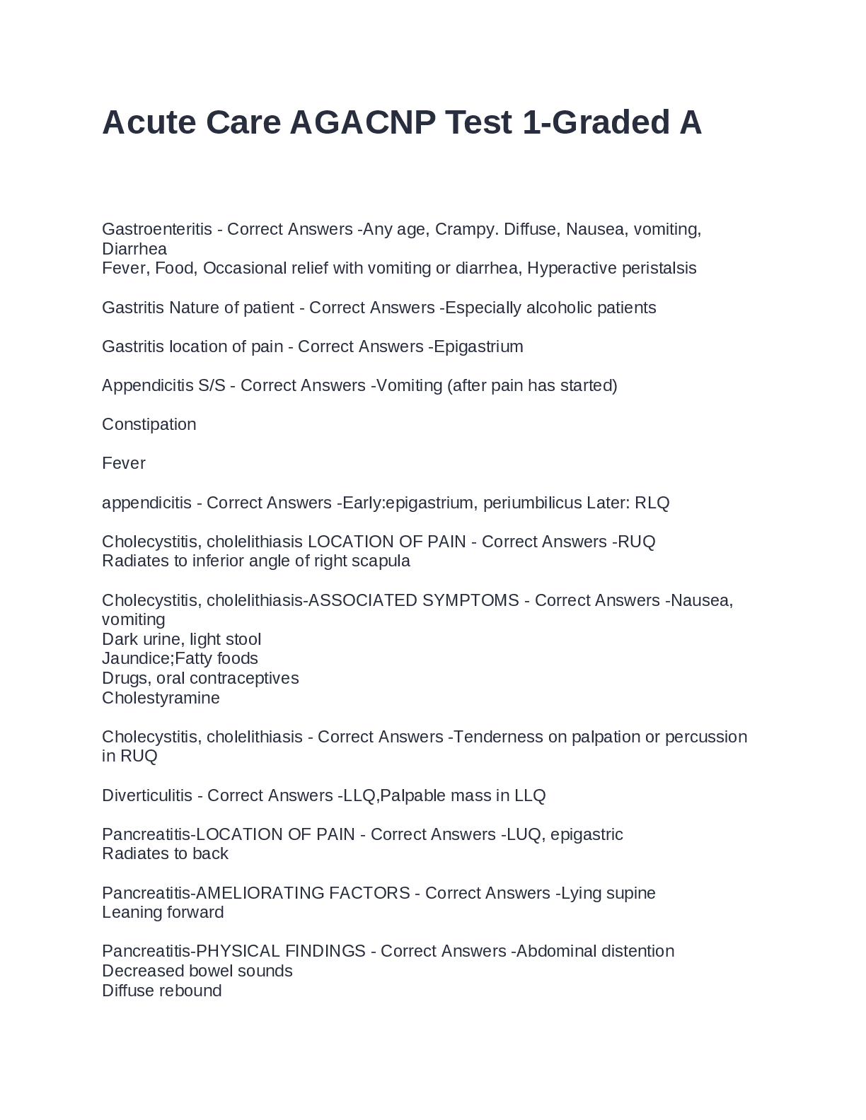 *NURSING > EXAM > Acute Care AGACNP Test 1-Graded A 2024 (All)