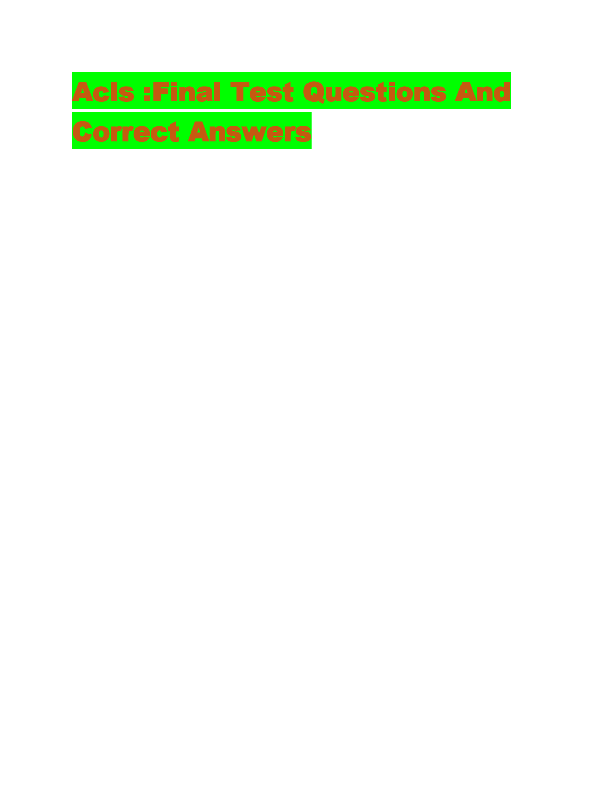 *NURSING > EXAM > Acls Final Test Questions And Correct Answers (All)