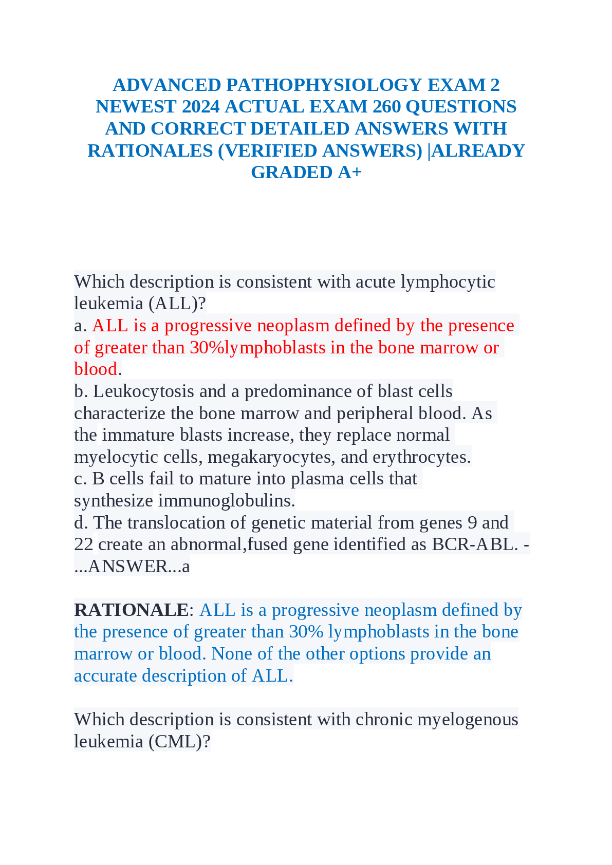 *NURSING > EXAM > ADVANCED PATHOPHYSIOLOGY EXAM 2 NEWEST 2024 ACTUAL EXAM 260 QUESTIONS AND CORRECT DETAILED ANSWERS WITH RATIONALES (VERIFIED ANSWERS) ALREADY GRADED A+ (All)