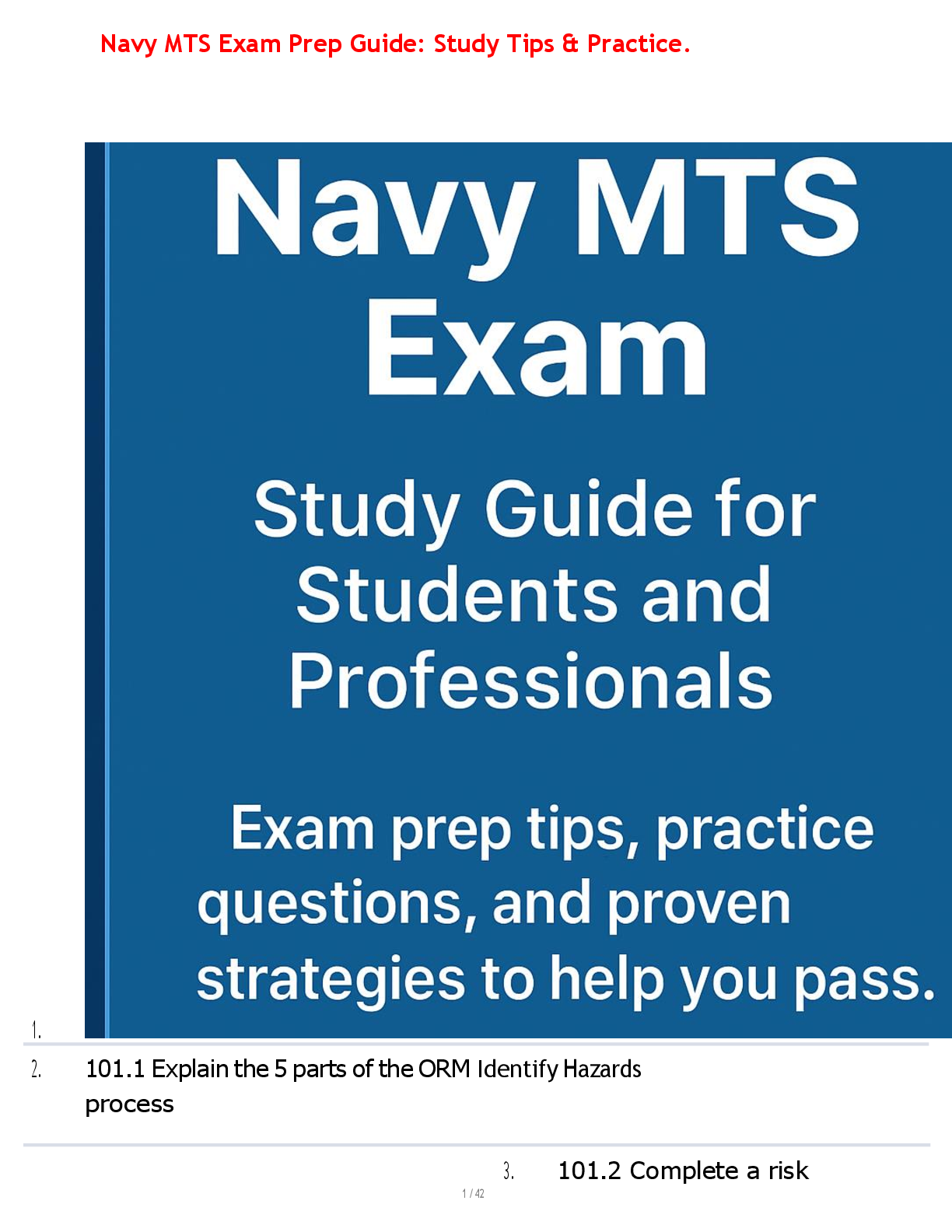 *NURSING > QUESTIONS & ANSWERS > Navy MTS Exam Prep Guide: Study Tips & Practice. (All)