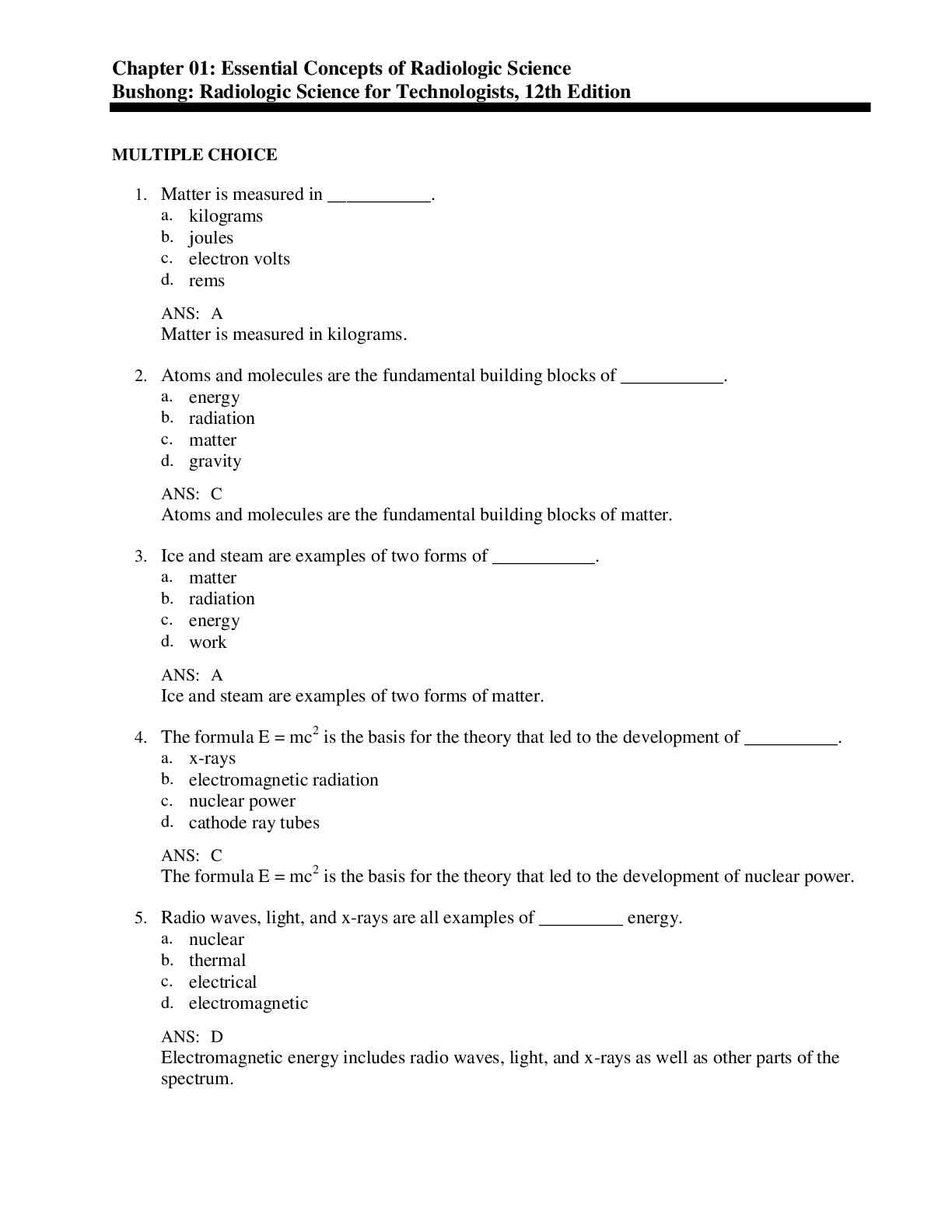 *NURSING > TEST BANKS > Bushong Radiologic Science for Technologists, 12th Edition Test bank (All)