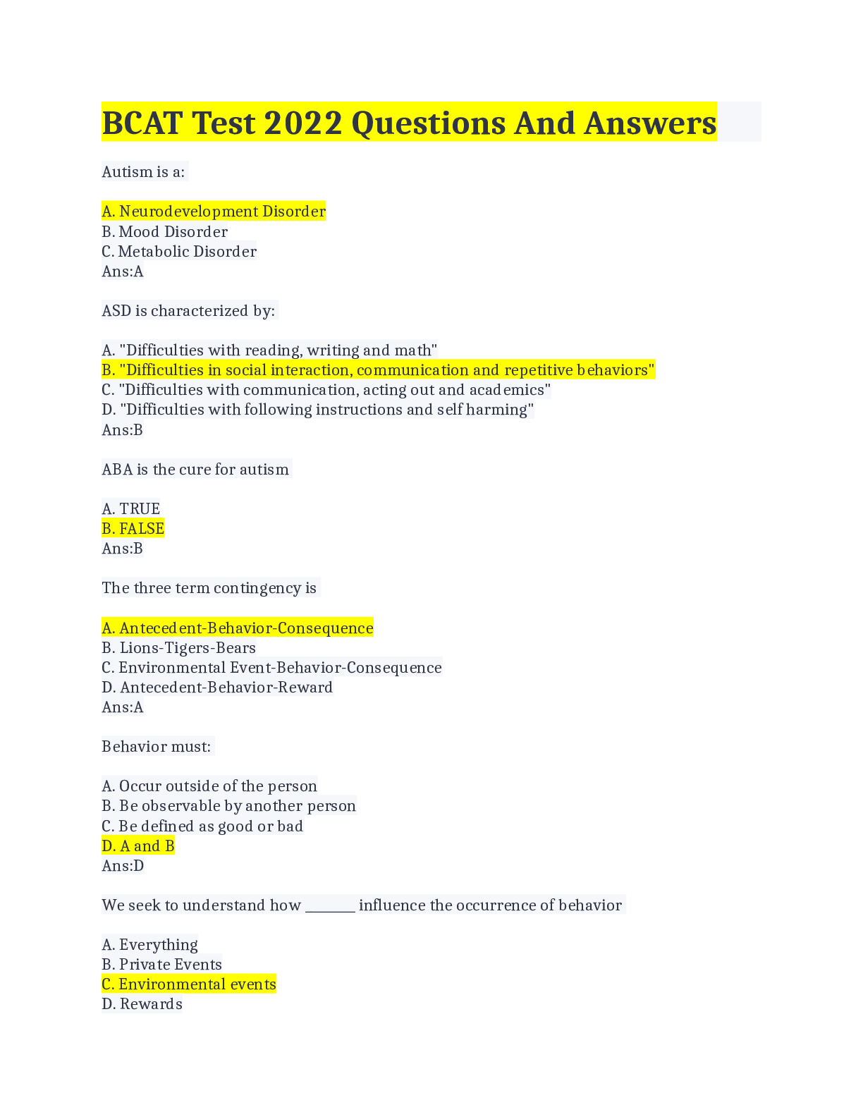 *NURSING > QUESTIONS & ANSWERS > BCAT Test 2022 Questions And Answers (All)