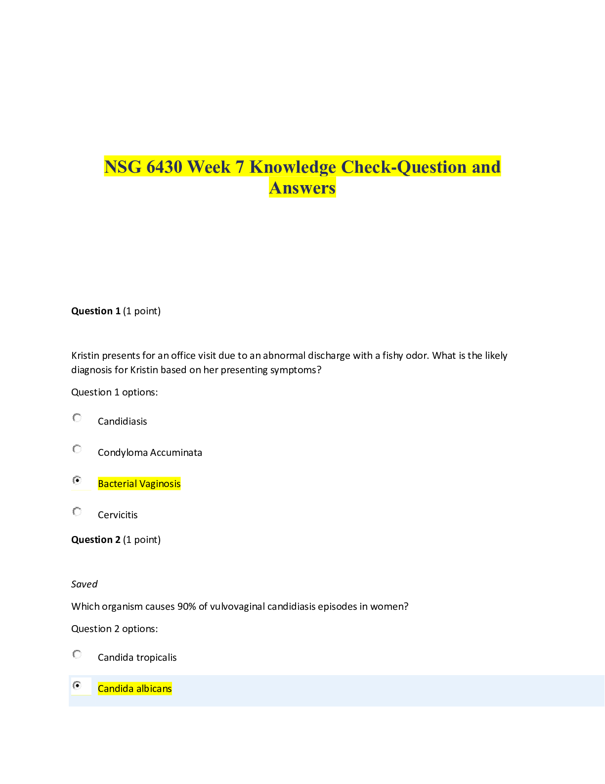 *NURSING > EXAM > NSG 6430 Week 7 Knowledge Check-Question and Answers (All)