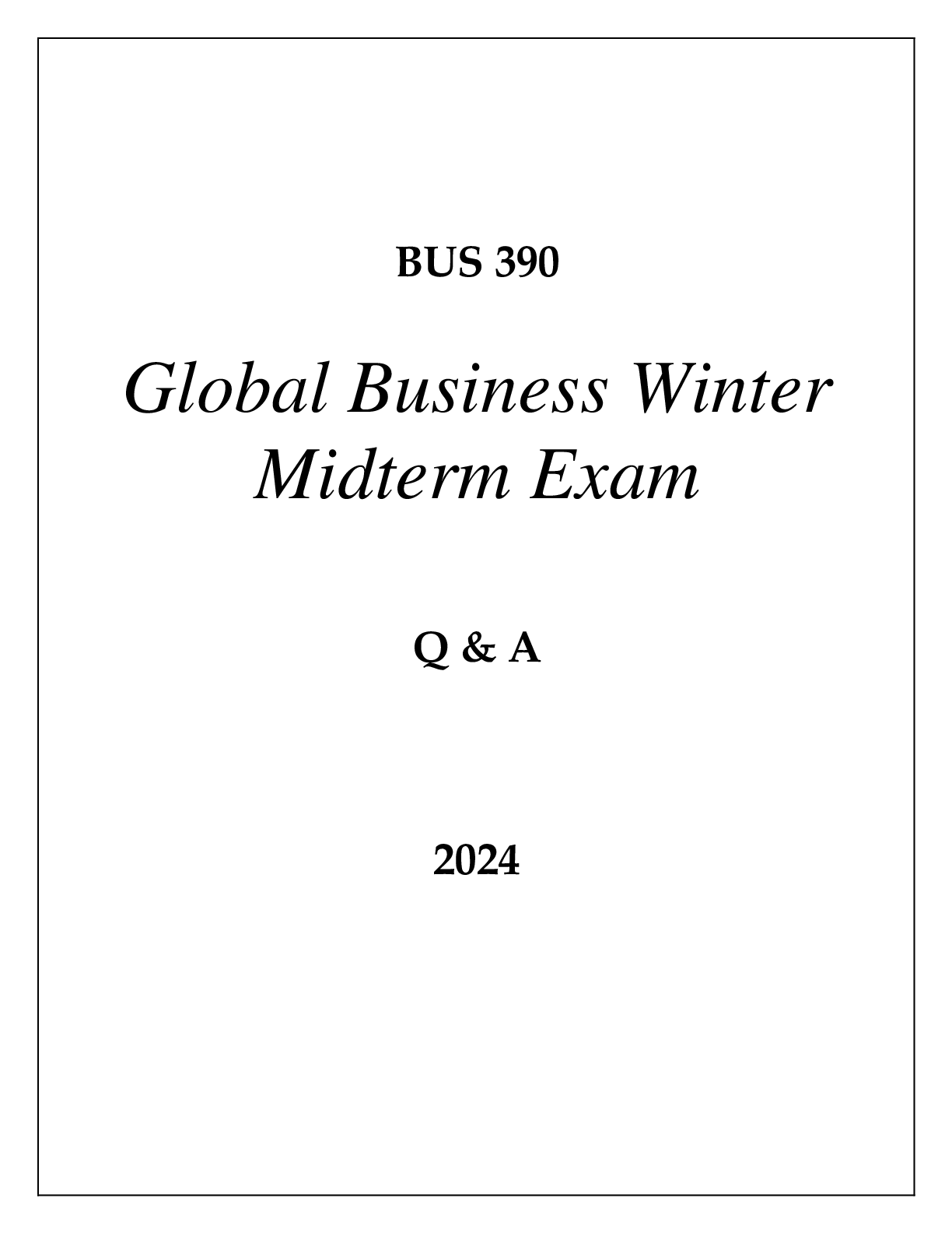 *NURSING > EXAM > BUS 390 GLOBAL BUSINESS WINTER MIDTERM EXAM Q & A 2024 (GRAND CANYON UNI) (All)