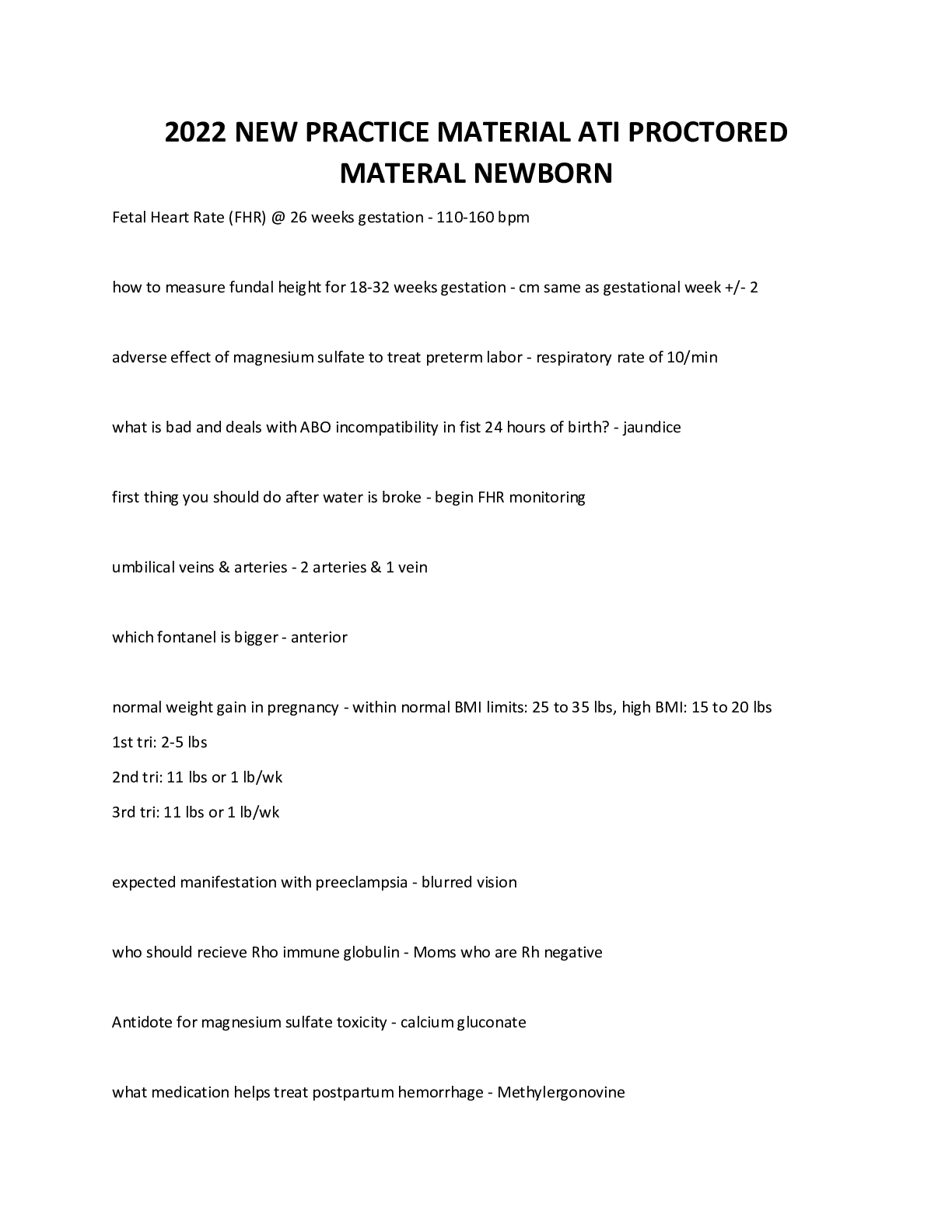 *NURSING > EXAM > 2022 NEW PRACTICE MATERIAL ATI PROCTORED MATERAL NEWBORN (All)