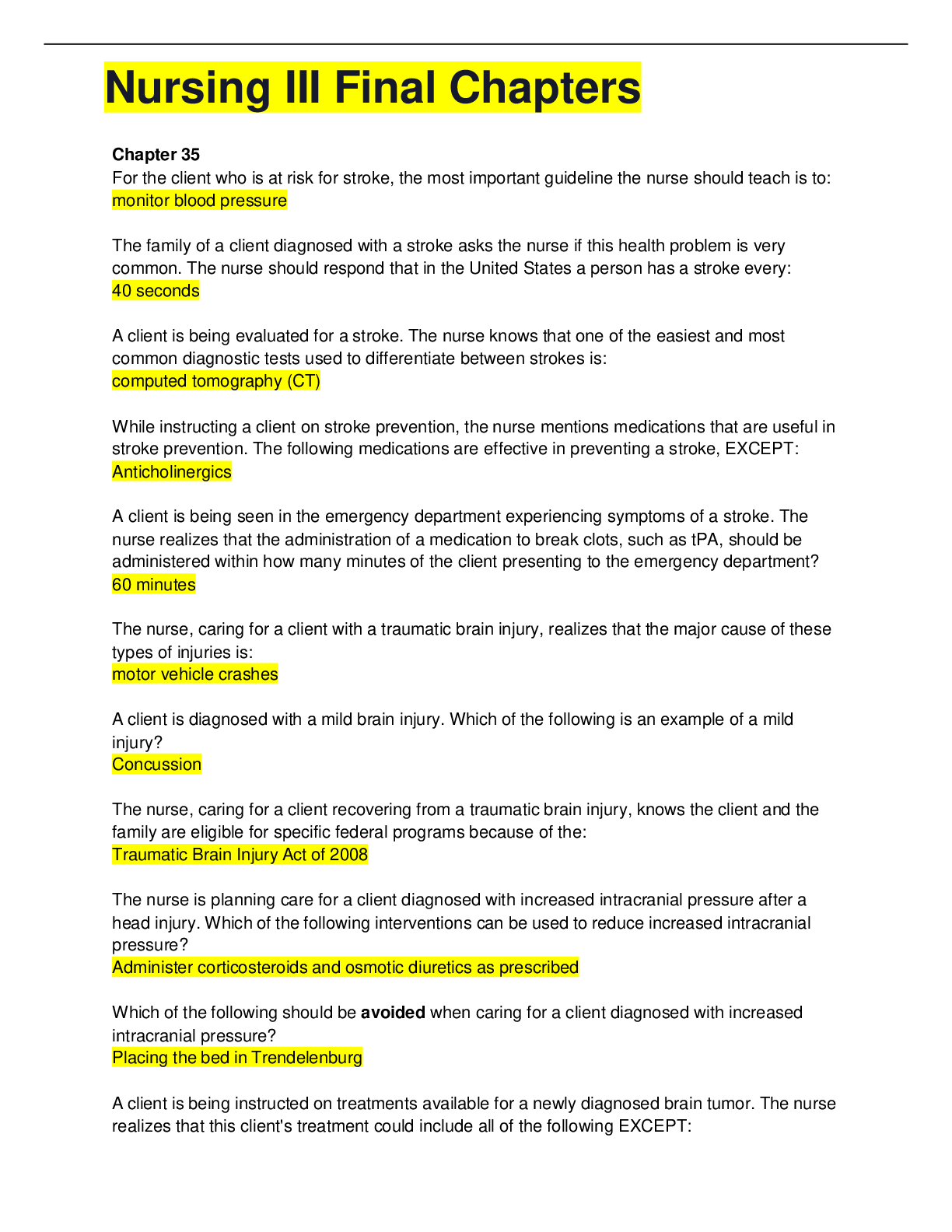 *NURSING > EXAM > NURSING NUR280/NUR Nursing III Final Chapters Questions And Answers/RATED A+ (All)
