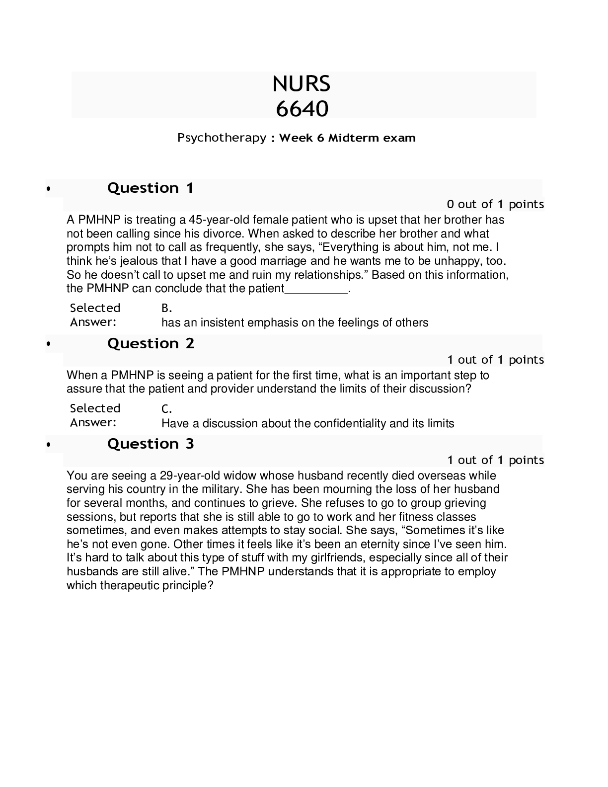 *NURSING > EXAM > NURS 6640 Psychotherapy : Week 6 Midterm Exam (All)