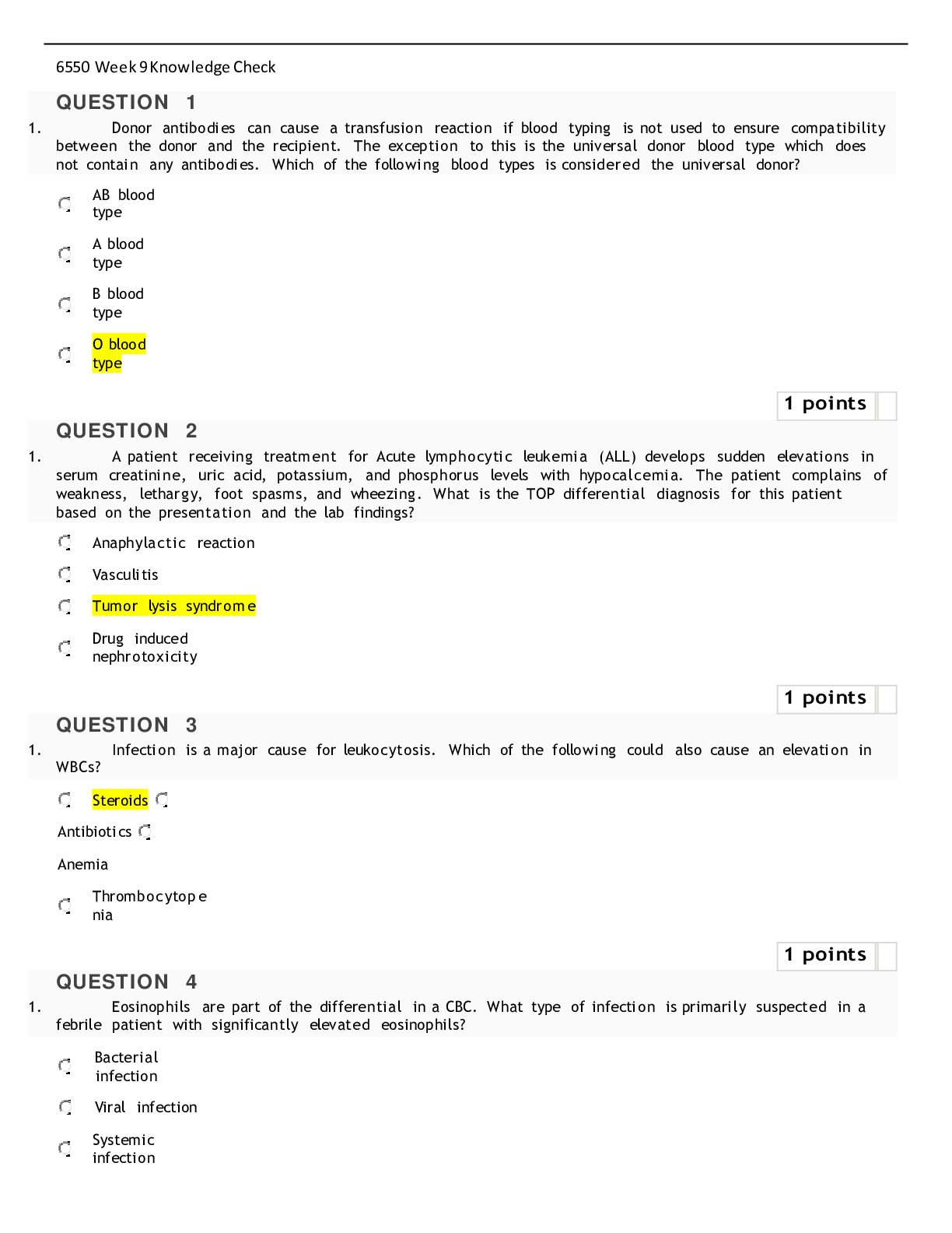 *NURSING > QUESTIONS & ANSWERS > Walden University NURS 6550 Week 9 Knowledge Check 2022 - All Answers 100% Correct (All)