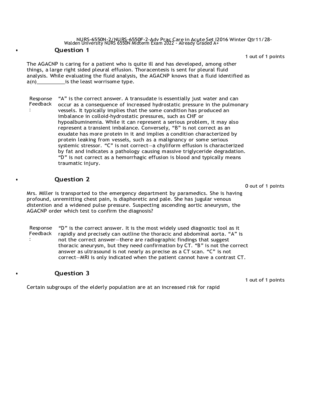 *NURSING > EXAM > Walden University NURS 6550N Midterm Exam (Real Exam Questions and Answers) 2022 - Already Graded A+ (All)