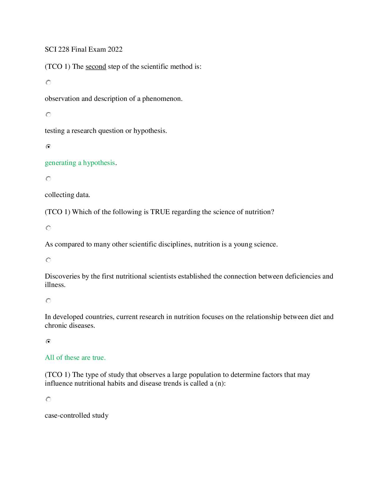 *NURSING > EXAM > SCI 228 Final Exam_ Nutrition, Health, and Wellness with Lab 2022 (Graded, A) (All)