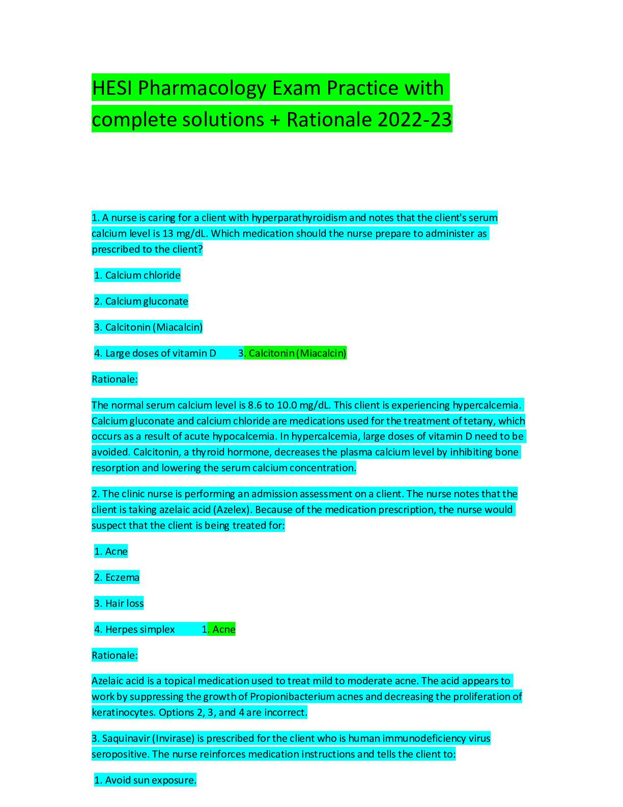 *NURSING > EXAM > HESI Pharmacology Exam Practice with complete solutions + Rationale 2022-23 (All)